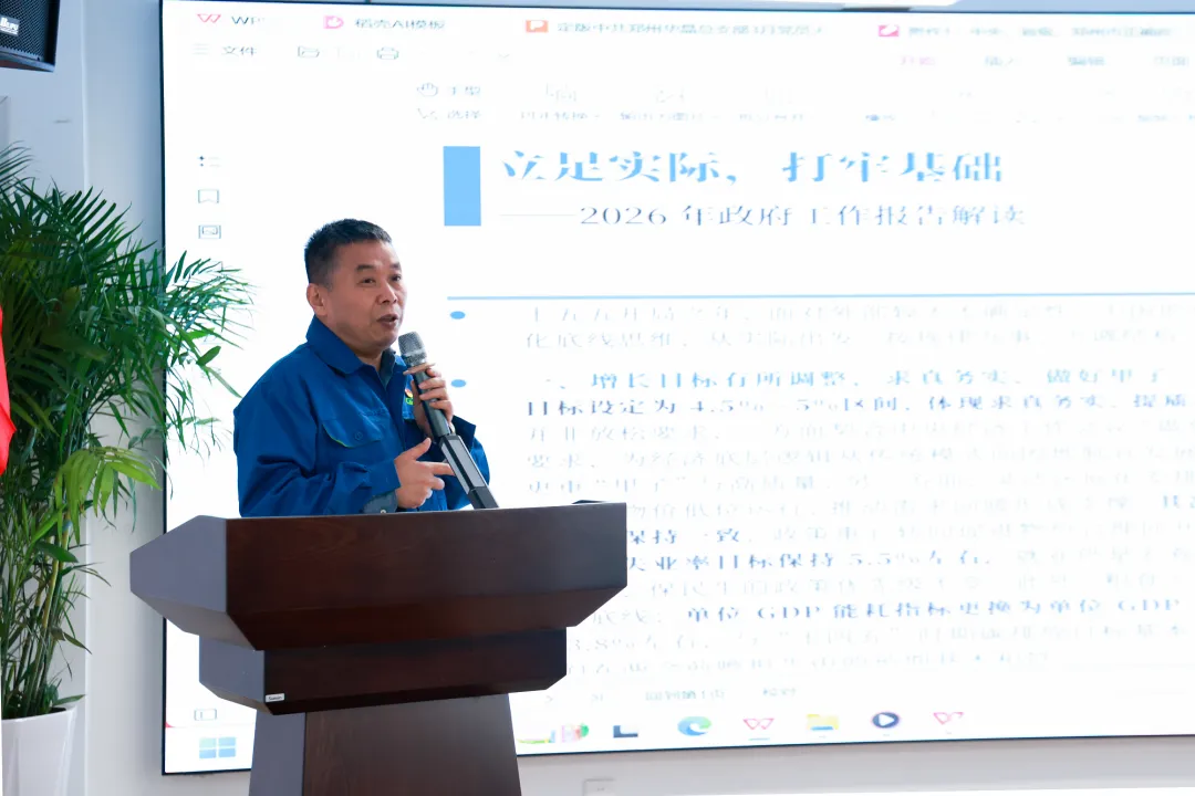 会上,李勇围绕《2026年政府工作报告》的核心内容,从经济增长目标调整、现代化产业体系建设、新质生产力培育等关键内容作了深入讲解,并结合行业形势分享了学习体会。