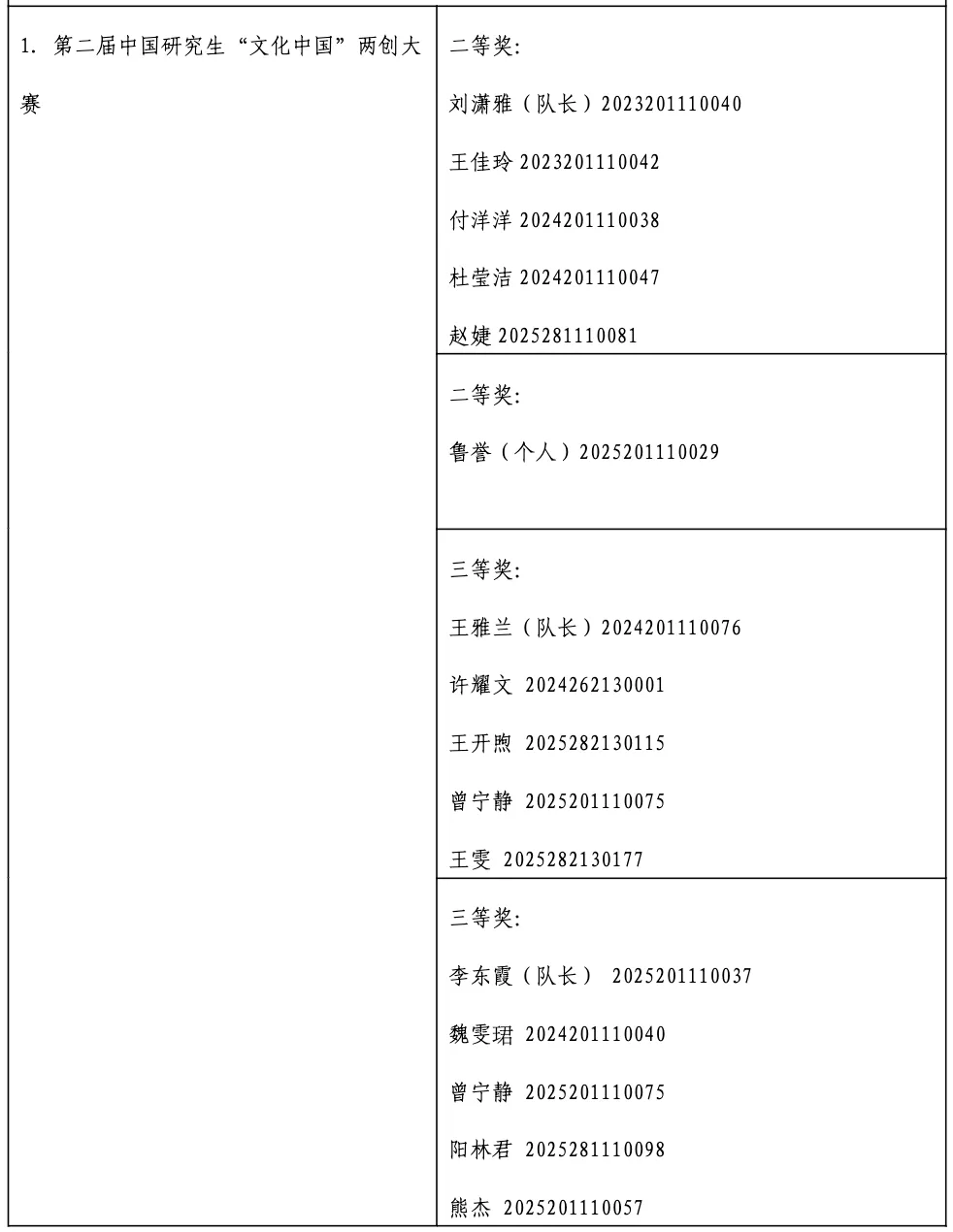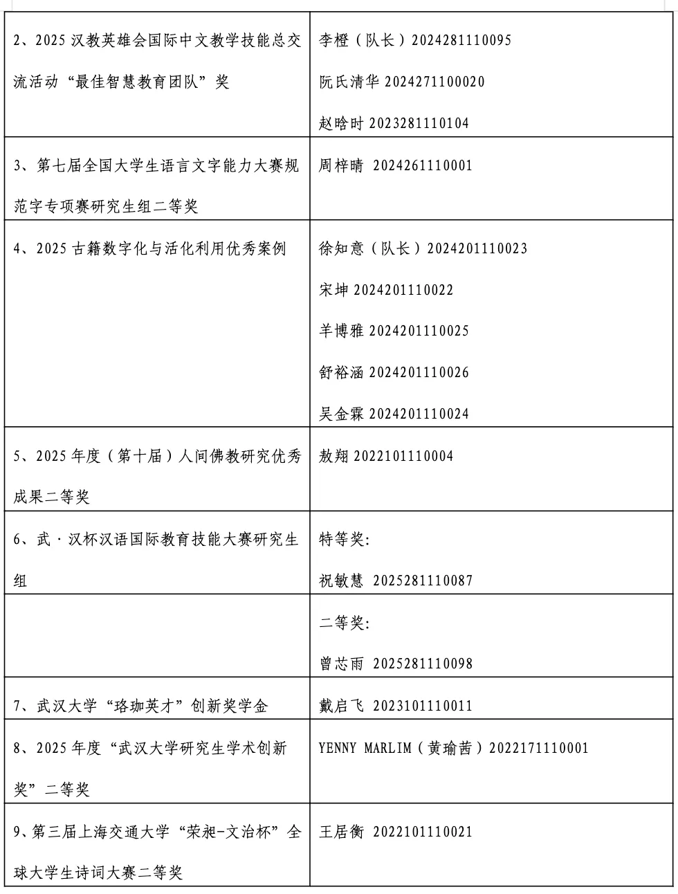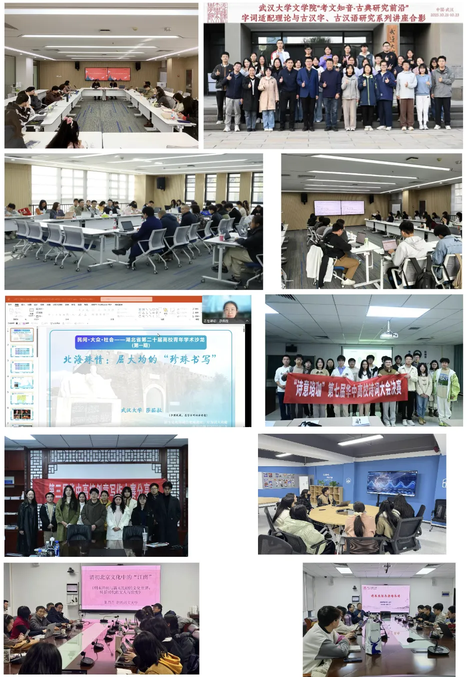 学院研究生积极投身到各类实习实践中,共有10名研究生参加党委研究生工作部组织的2025年“武大研行”研究生暑期实践锻炼活动,16名研究生参加“武大研行·揭榜挂帅”学科实践活动。我院号召研究生参加第二届中国研究生“文化中国”两创大赛,组织四支队伍参赛,由文学院程芸老师、汪超老师指导,刘潇雅、王佳玲、付洋洋、杜莹洁和赵婕同学组成的“珞珈寻岳”队获得二等奖;由鲁小俊老师指导,鲁誉同学个人组成的“德力助手”队获得二等奖;由余蔷薇老师、易尧华老师指导,王雅兰、许耀文、王开煦、曾宁静、王雯同学组成的“说文解字”队获得三等奖;由汪超老师指导,李东霞、魏雯珺、曾宁静、熊杰、阳林君同学组成的“大运河数字造梦”队获得三等奖。刘潇雅同学带领队员深入江西三地开展社会实践活动,所作报告《采茶歌到试茶天,古韵新时续华章——江西宜春袁州区、宜春高安市、吉安永新县三地采茶戏调研报告》获得武汉大学2024—2025学年度研究生实习实践优秀成果一等奖。学院积极参与学校思政教育事业,组织研究生参与武大极地科考故事与空天信息专业采编工作,成果《经纬冰穹》和《逐梦苍穹》备受称赞。