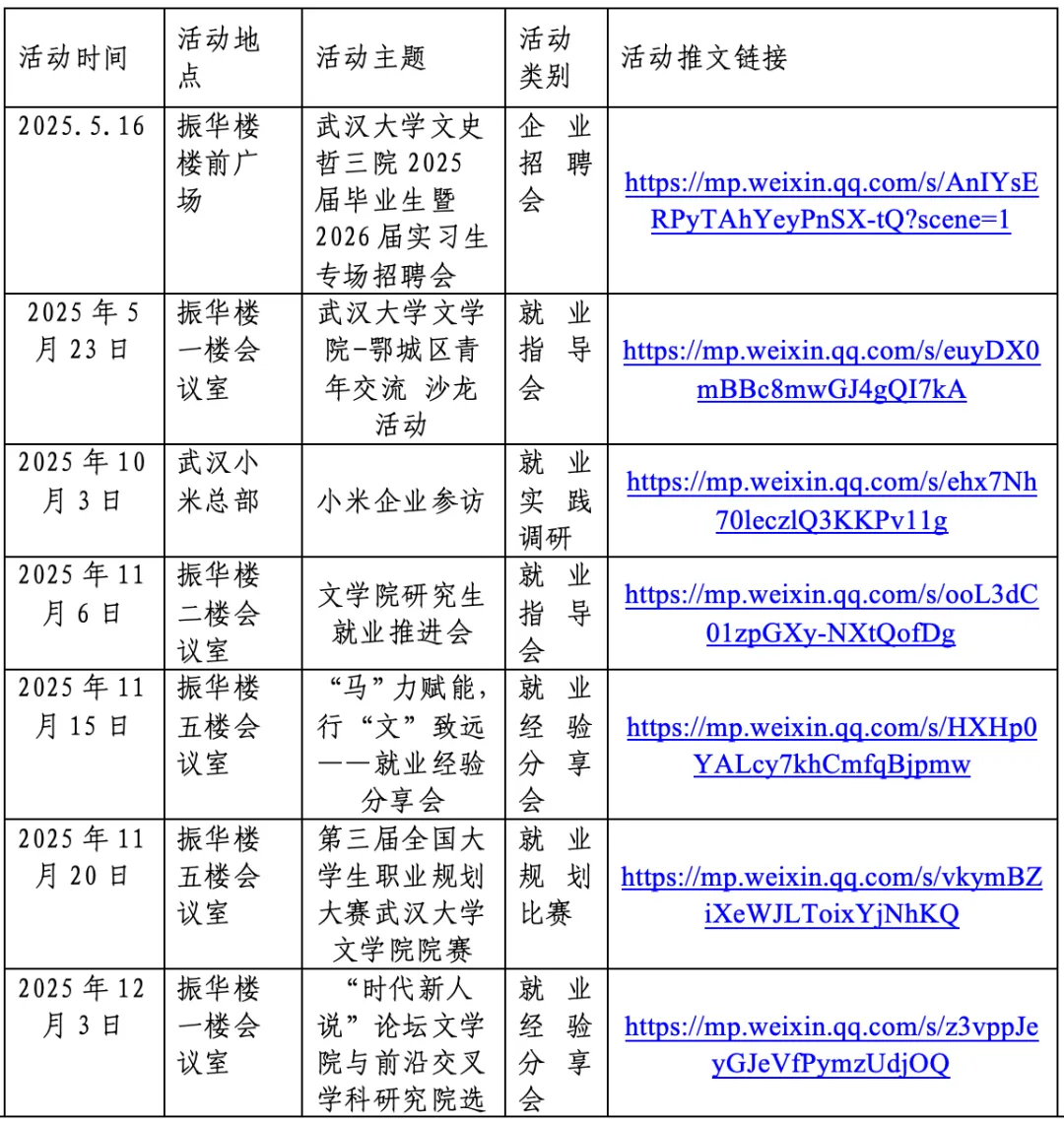 举办就业活动10次(含就业经验分享会3次、就业指导会3次、就业实践调研1次、就业规划比赛相关活动1次、企业招聘会1此、政府宣讲会1次)