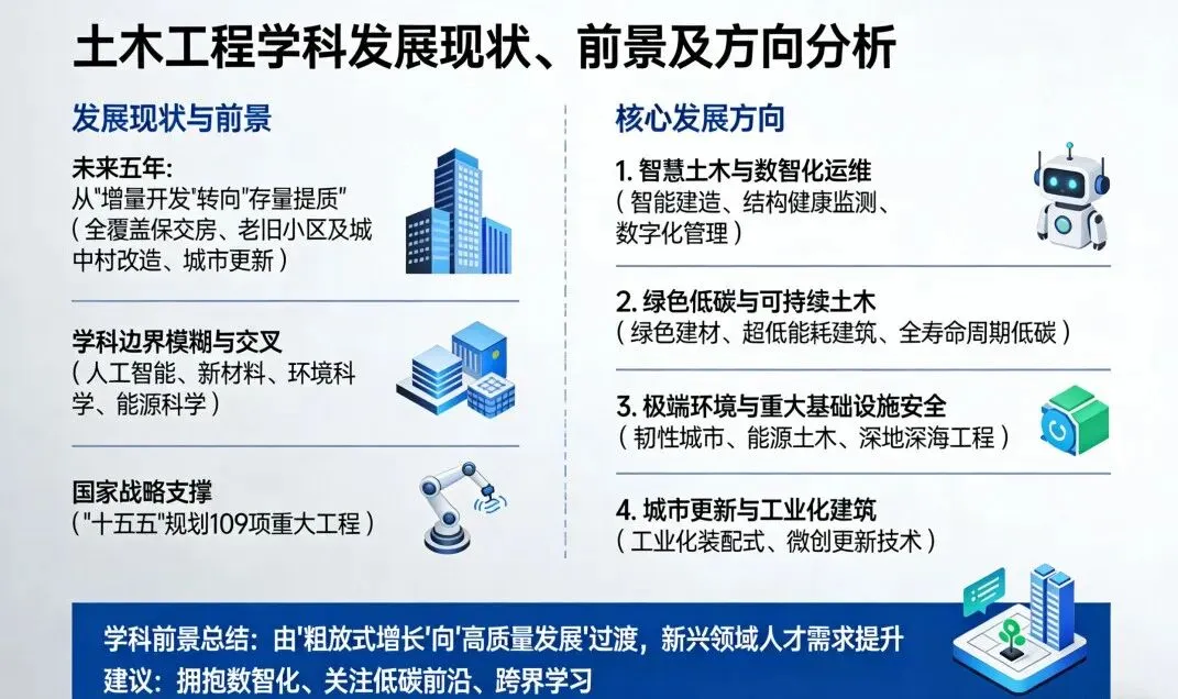 未来五年,土木工程将不再仅仅是“钢筋混凝土”的堆砌,而是国家现代化基础设施体系与新质生产力的重要载体。