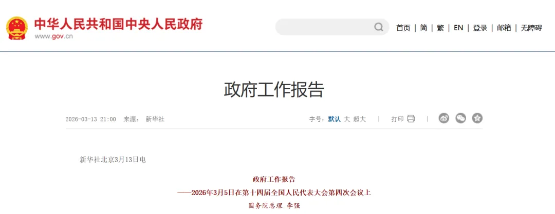 3月12日闭幕的十四届全国人大四次会议表决通过关于政府工作报告的决议。3月13日,新华社、中国政府网发布了2026年《政府工作报告》全文。