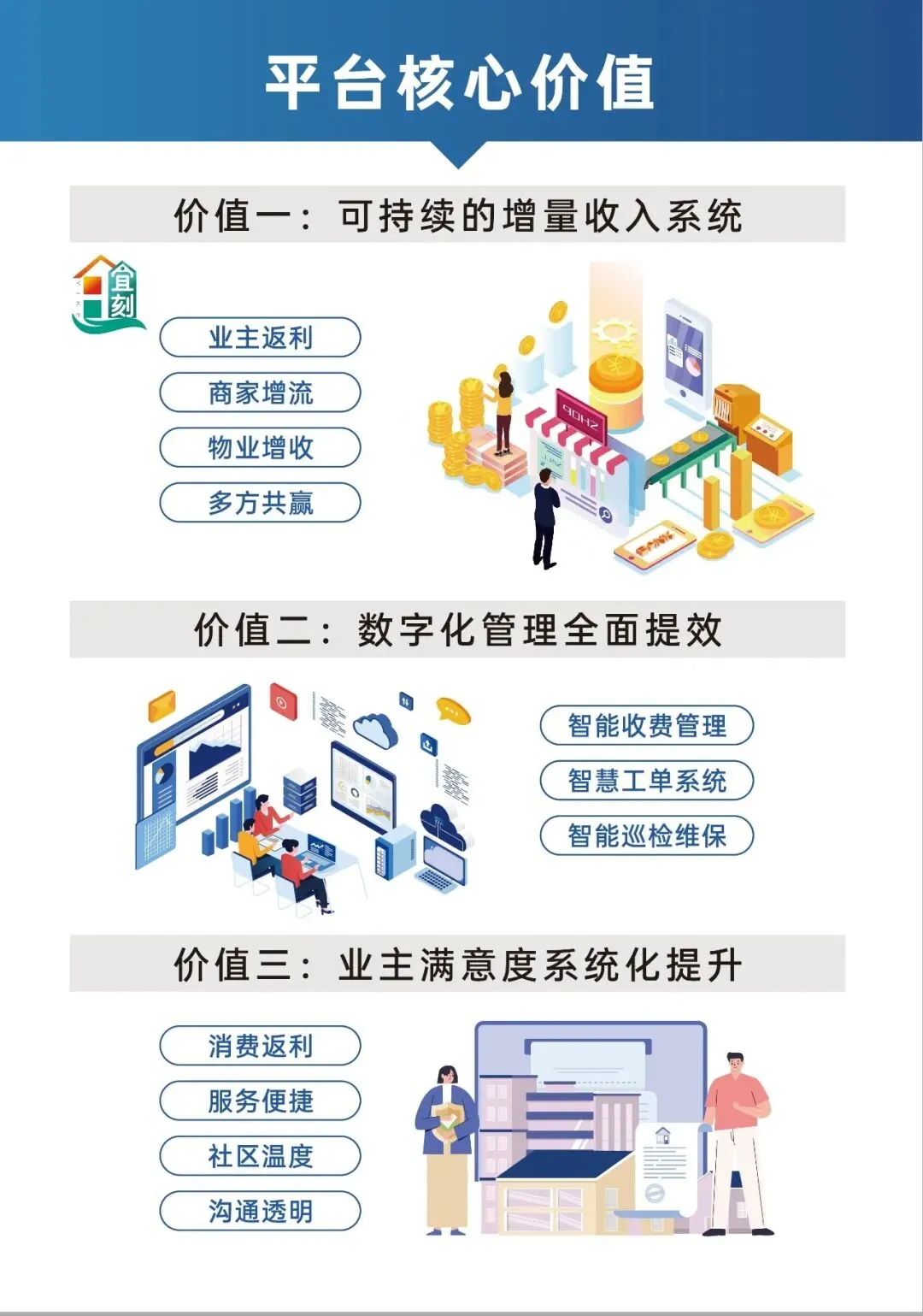 简单理解:宜刻公司整合商家资源,业主去消费,不仅可以享受特权折扣,还能享受“商家把二次优惠部分,作为物业费返给业主”。商家优惠的部分,在平台上转为”物业费公积金“,业主在平台上自动缴纳物业费。此物管系统,物业公司自己购买2万.宝鸡物业协会内部人员,前30名免费赠送物管系统,开设物业专属后台。点击进入宜刻小程序体验