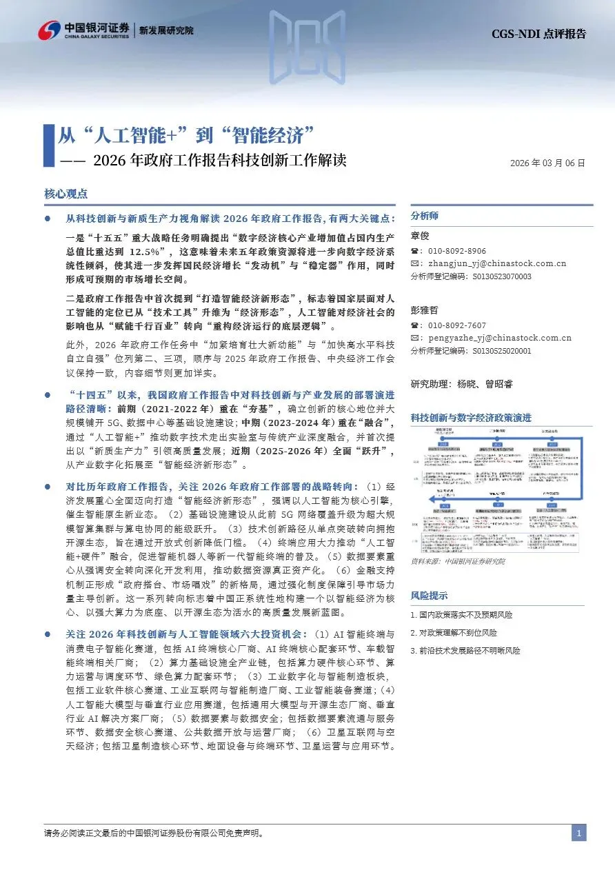2026年政府工作报告科技创新工作解读:从“人工智能+”到“智能经济”