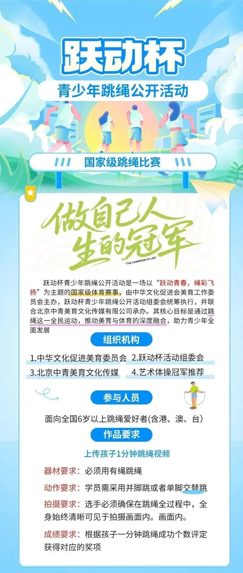 【中学生家长必看】跃动杯青少年跳绳公开活动报名开启!主办权威 + 国省双证加持,证书助力升学评优、补充综评档案