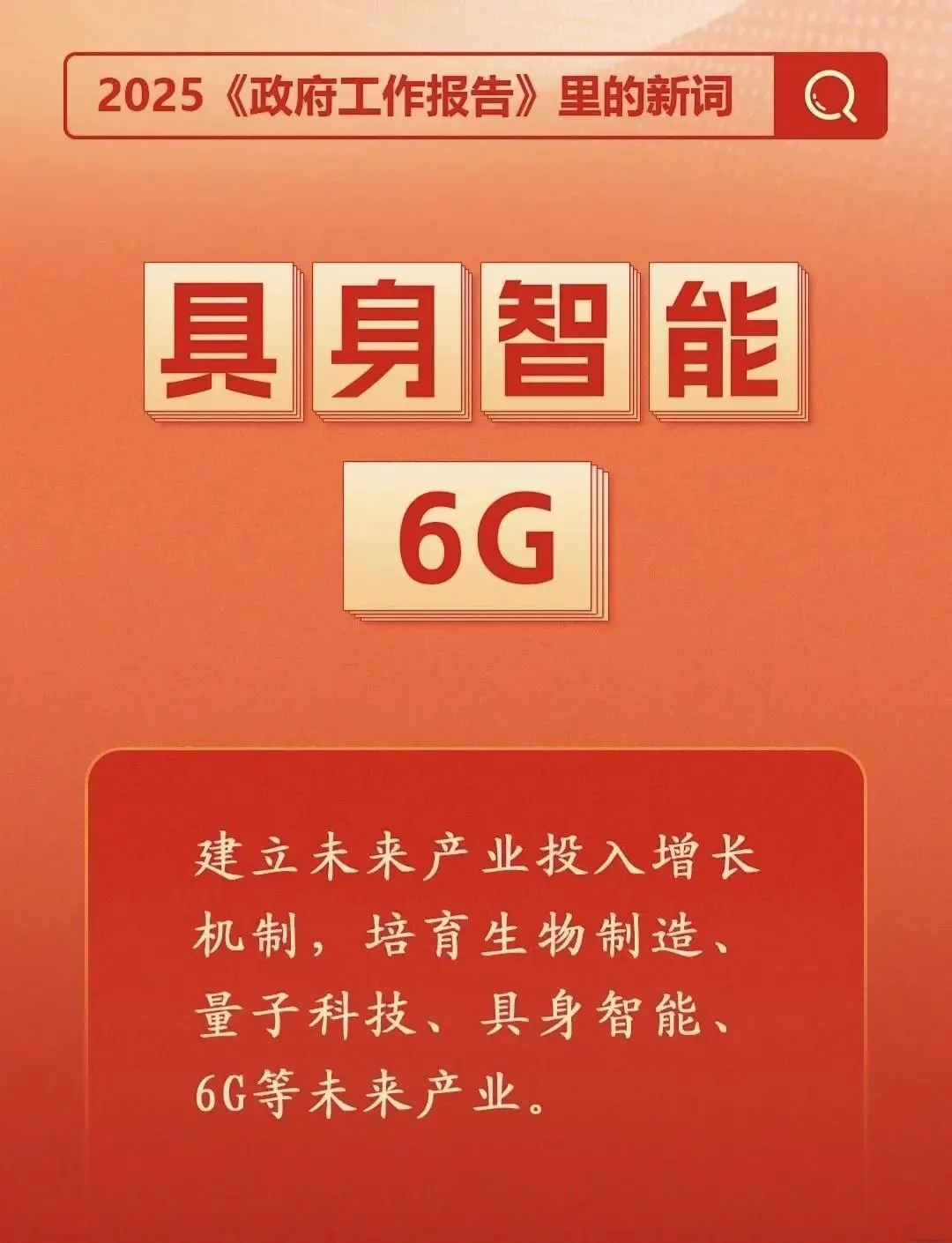 具体点了哪些?未来能源、量子科技、具身智能、脑机接口、6G。这些以前听着有点远的词,现在都写进了政府工作报告。