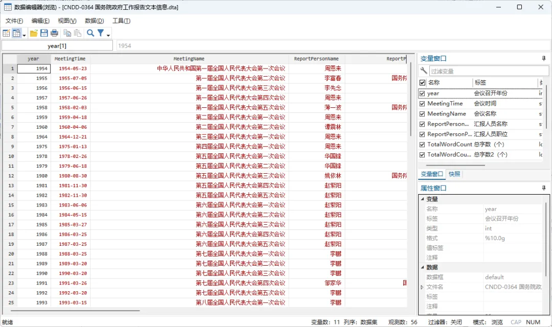CNDD-0364 1954-2024年国务院政府工作报告文本信息