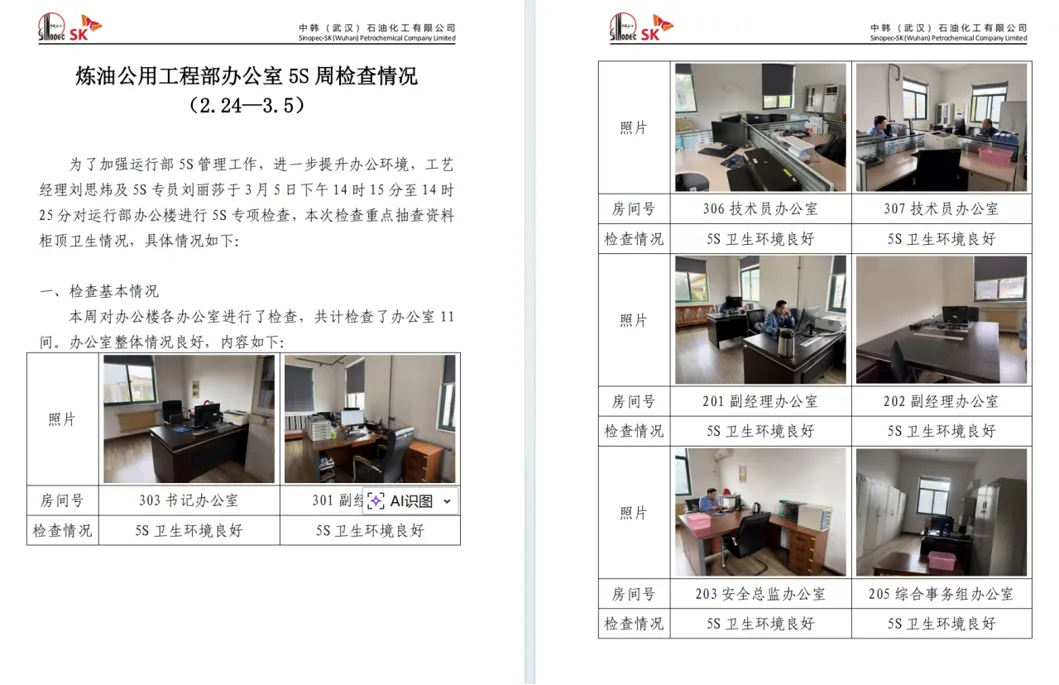 4.持续提升办公室5S环境,每周持续开展办公室检查工作。
