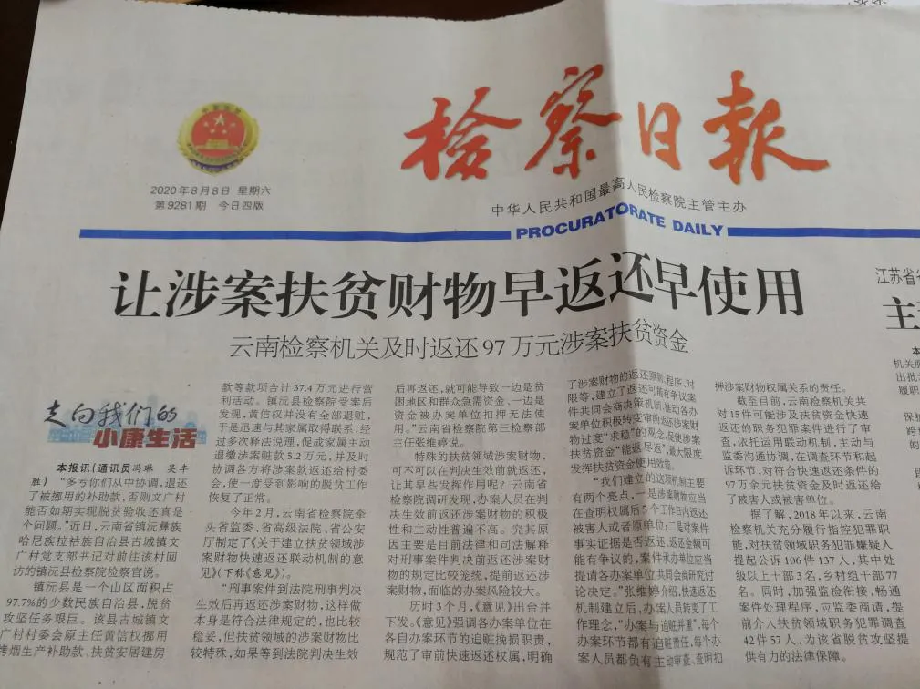 在脱贫攻坚和乡村振兴中积极贡献检察力量,用好国家司法救助,对因犯罪侵害等致生活陷入困境的人及其近亲属,坚持“应救尽救”,防止“因案致贫、因案返贫”,五年来共发放司法救助金41.9万元。