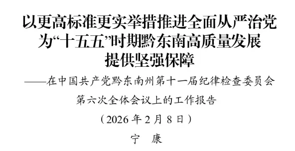 2026年是中国共产党成立105周年,是“十五五”开局之年。做好今年工作,要坚持以习近平新时代中国特色社会主义思想为指导,深入贯彻党的二十大和二十届历次全会精神,认真落实党的二十届四中全会、二十届中央纪委五次全会、省委十三届历次全会、十三届省纪委五次全会部署,全面贯彻习近平总书记关于党的建设的重要思想、关于党的自我革命的重要思想,深入贯彻习近平总书记在贵州考察时的重要讲话精神,落实州委十一届历次全会要求,深刻领悟“两个确立”的决定性意义,坚决做到“两个维护”,持之以恒推进全面从严治党,持续深化正风肃纪反腐,加大一体推进不敢腐、不能腐、不想腐力度,更加有力有效铲除腐败滋生的土壤和条件,持续开展“纪检监察工作规范化法治化正规化建设年”行动,推进新时代新征程纪检监察工作高质量发展,为“十五五”时期黔东南高质量发展提供坚强保障。
