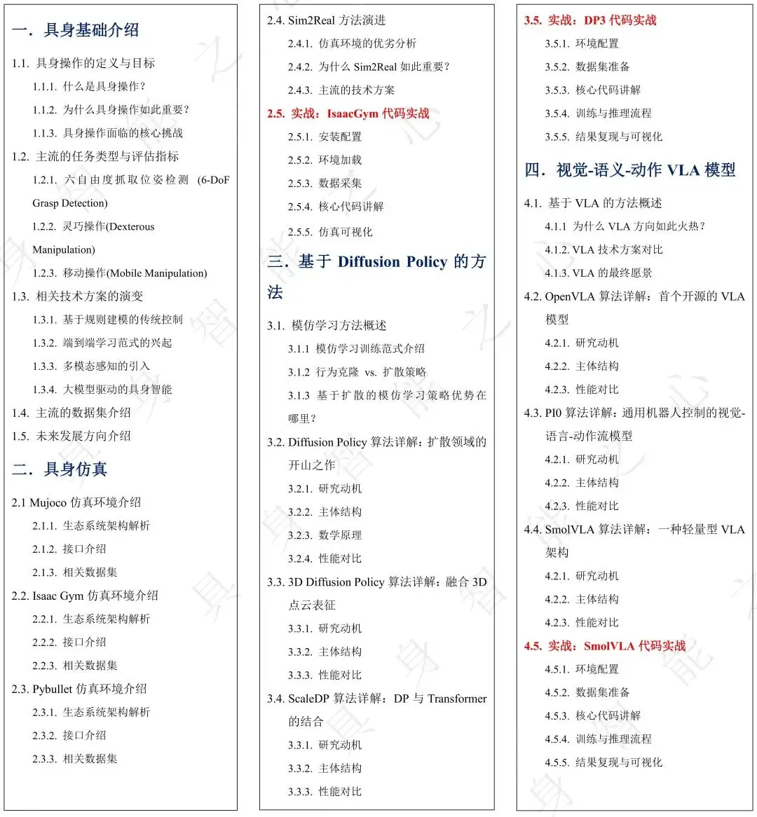 - 学习课程后,达到1-2年左右具身算法从业者的经验;