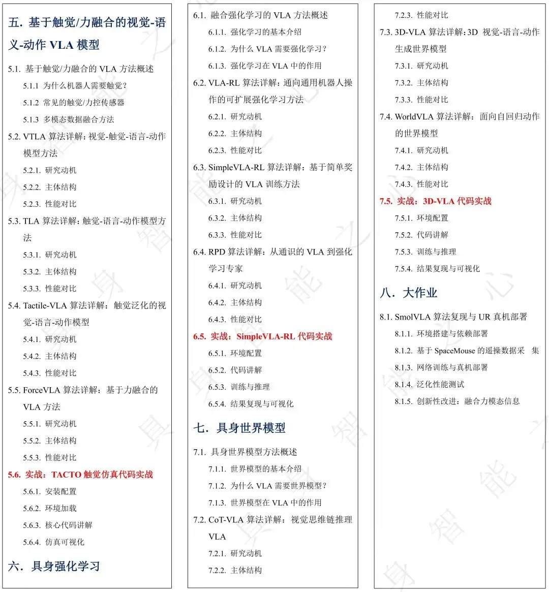 - 掌握基于触觉信息的VLA主流方案,以提升机器人系统的智能化水平;