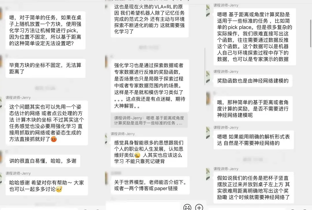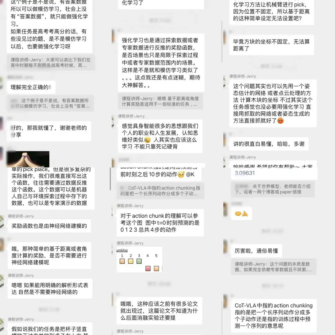 我们为大家梳理了从灵巧操作、移动操作的基础任务->具身仿真体系与框架->Diffusion Policy->VLA->VLA+触觉->VLA+强化学习->具身世界模型等领域。每个模块都配有实战,后面更有大作业监督大家成果与学习内容。大纲一览如下: