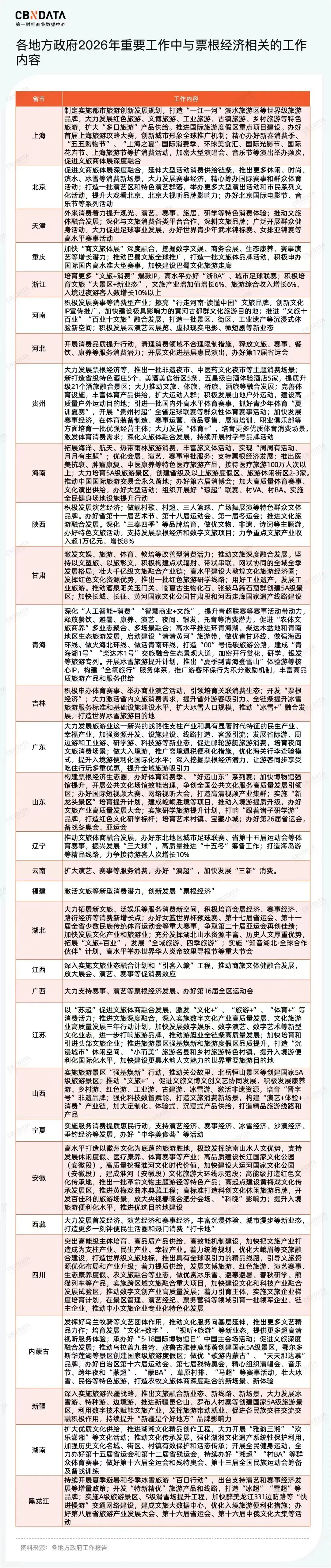 票根经济今年已经成了多地政府工作报告的高频词。江苏提到,“跟着苏超游江苏”等品牌活动彰显引流效应。安徽表示加强消费券、“票根”跨领域联动。北京则明确要“促进文商旅体展深度融合,延伸大型活动消费供给链条”。