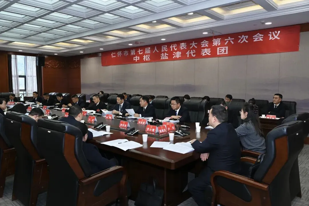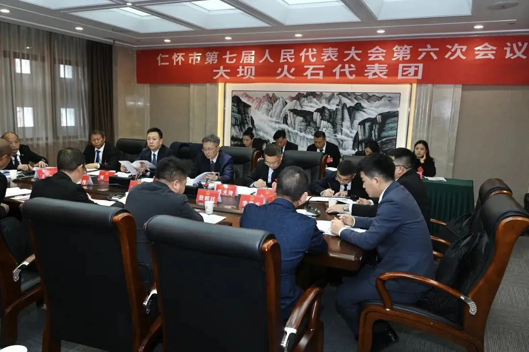 3月17日下午,出席仁怀市第七届人民代表大会第六次会议的各代表团召开会议,认真审议政府工作报告。