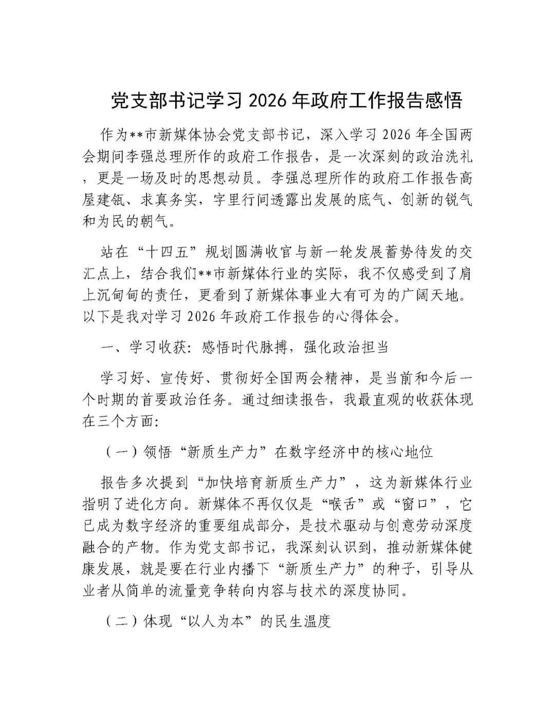 >党支部书记学习2026年政府工作报告感悟