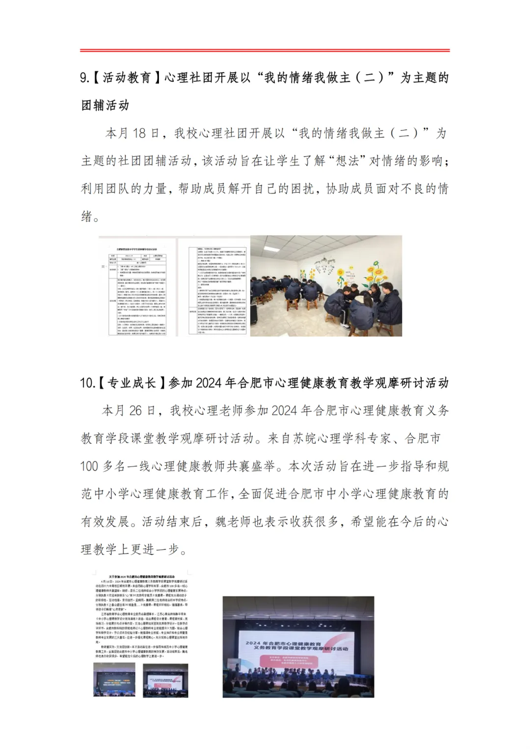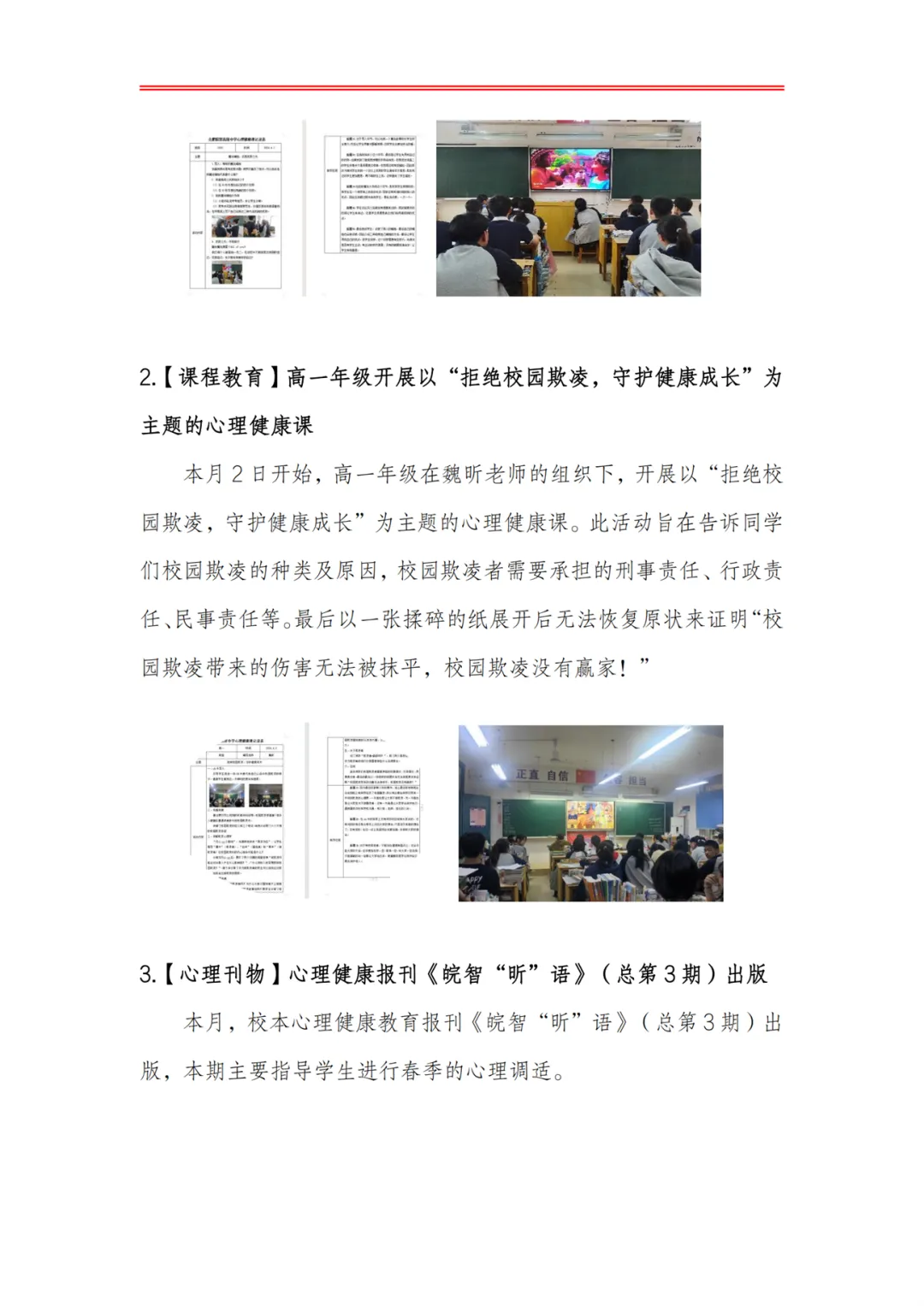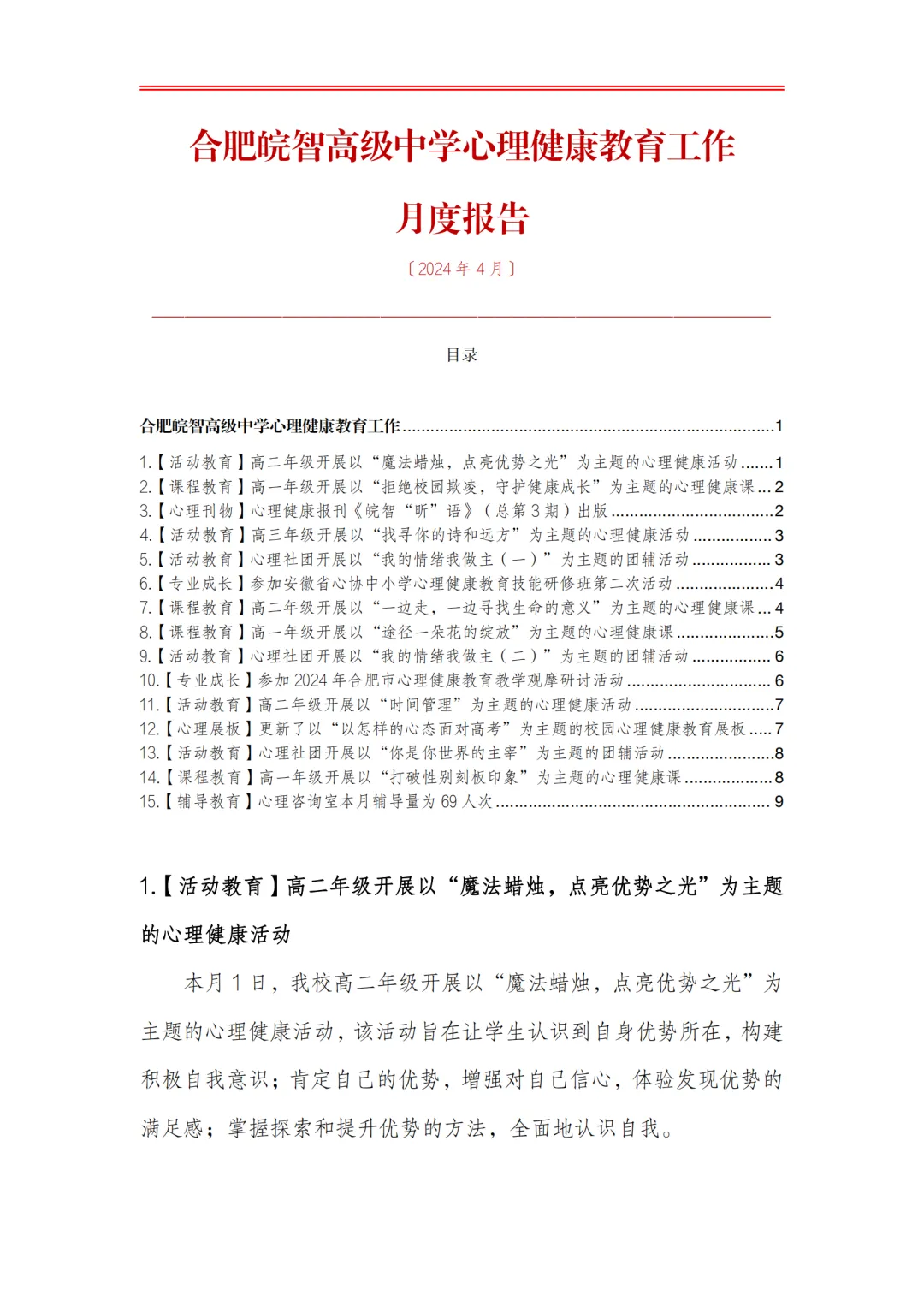 >合肥皖智高级中学心理健康教育工作月度报告(24年4月)