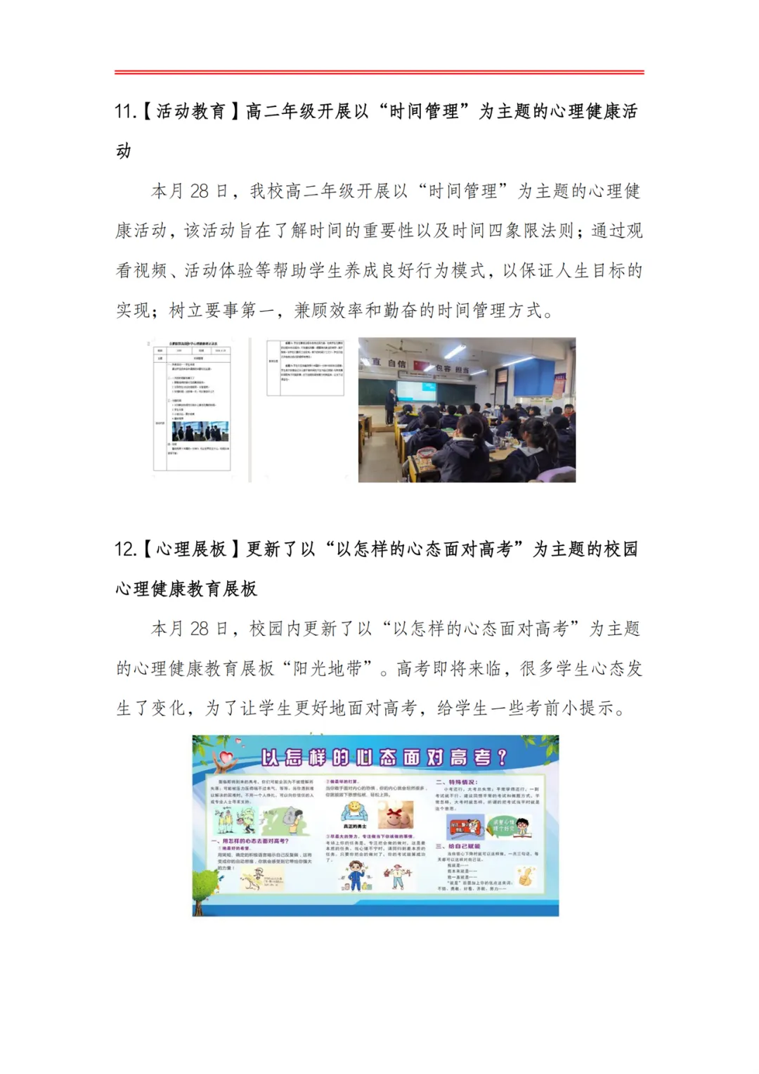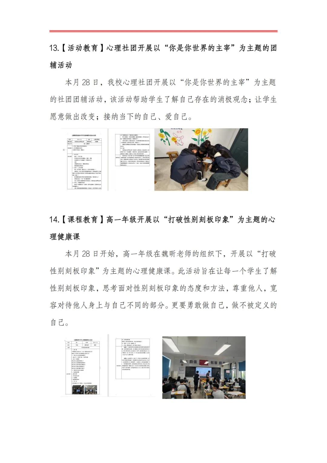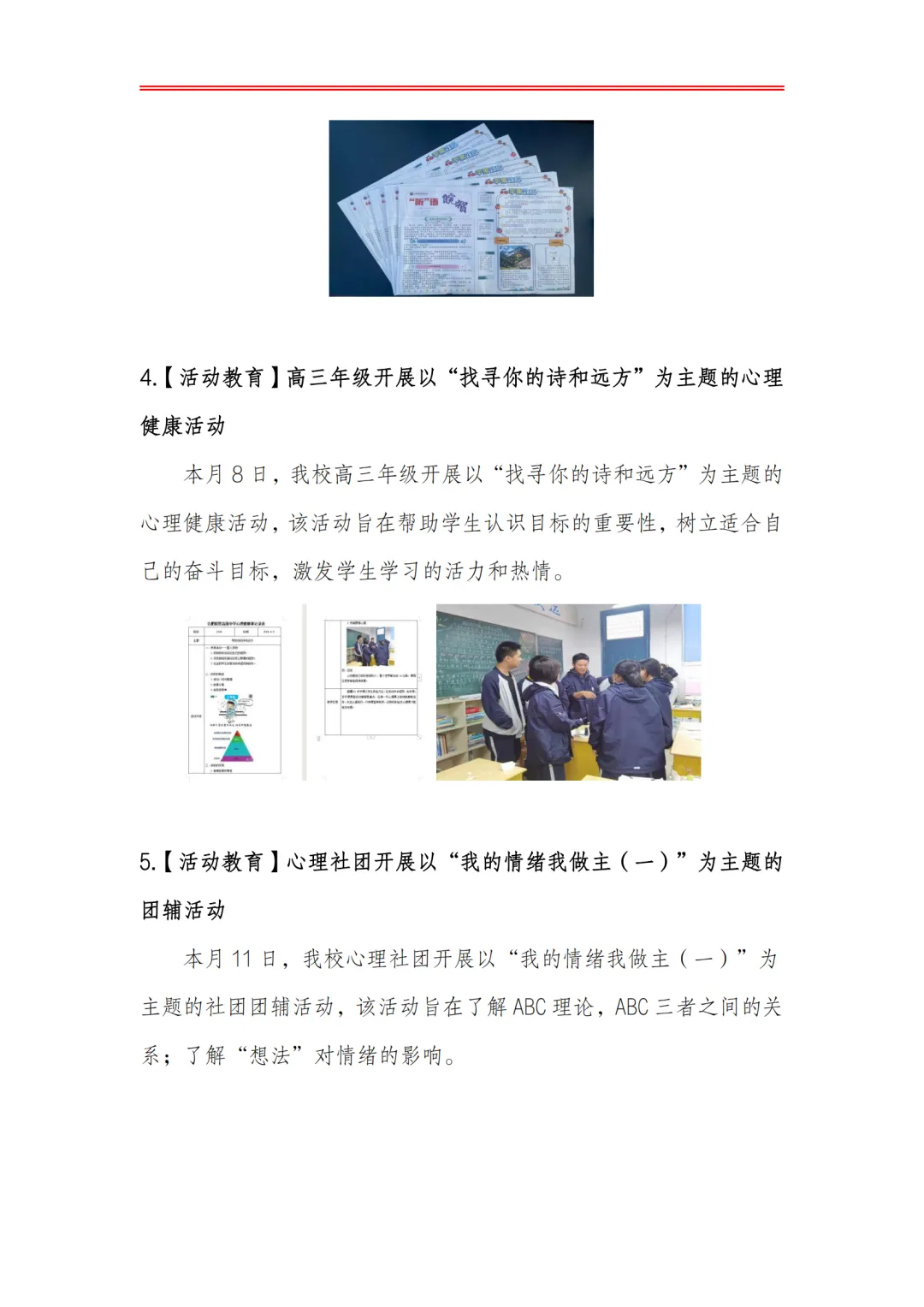 >合肥皖智高级中学心理健康教育工作月度报告(24年4月)