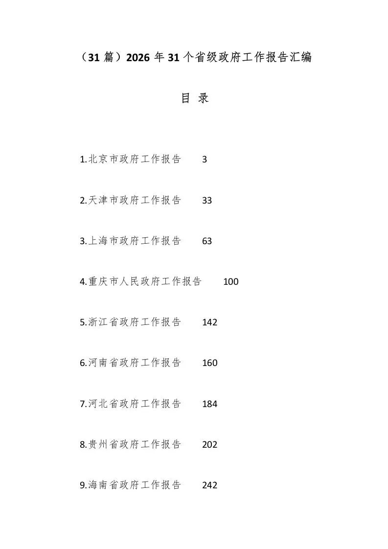 >(31篇)2026年31个省级政府工作报告汇编