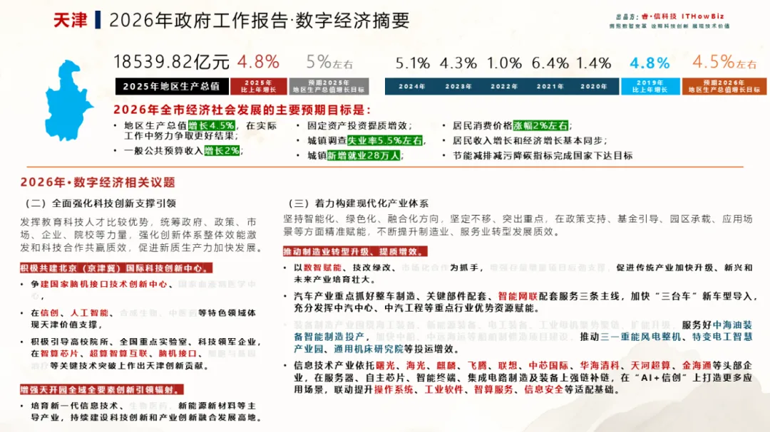 2026年是“十五五”开局之年,天津在圆满完成上合峰会服务保障任务、经济持续回升向好的基础上,明确提出以推进京津冀协同发展为战略牵引,扎实实施高质量发展“十项行动”,全面强化科技创新支撑引领。依托信创、智能科技等领域的深厚积累,天津正加速构建“AI+信创”全产业链,推动智算芯片、脑机接口等前沿技术突破,打造自主创新的重要源头和原始创新的主要策源地。
