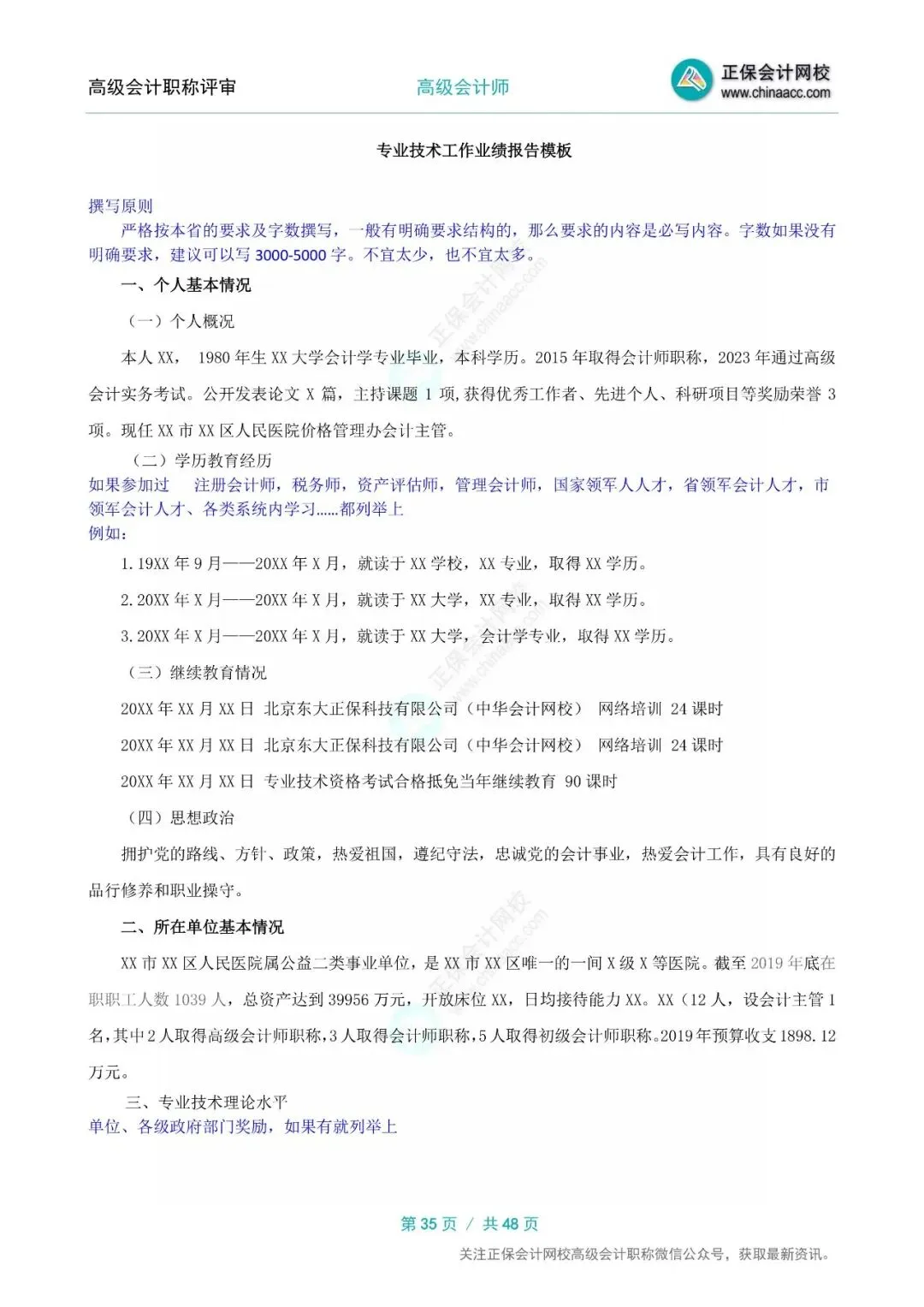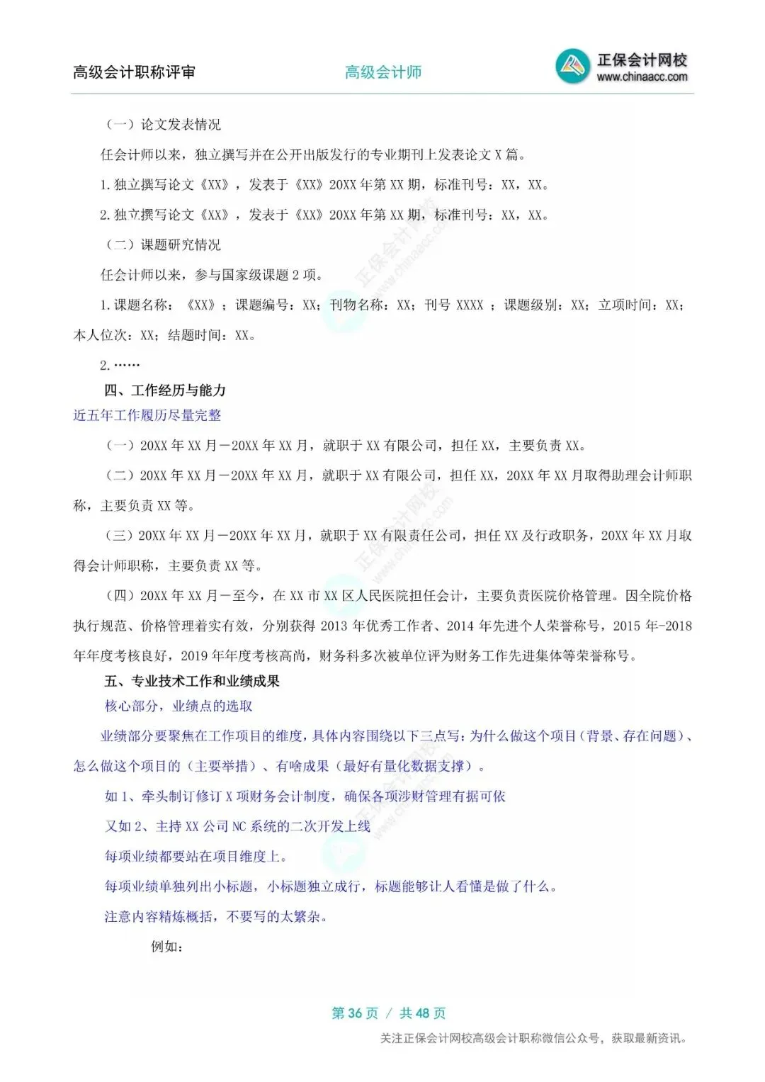 >高级会计师专业技术工作业绩报告模板(事业单位)