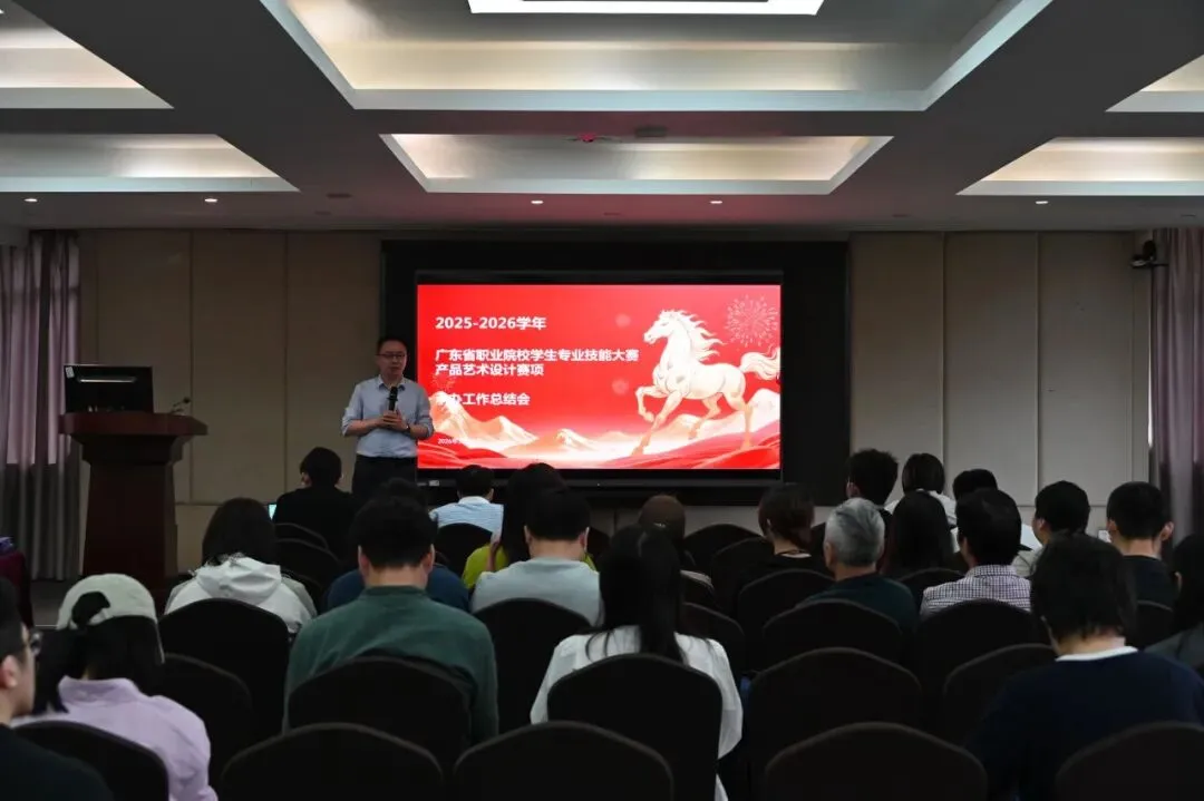 为总结赛事经验、凝聚工作共识,进一步提升赛事组织水平,3月17日,学院召开2026年广东省职业院校学生专业技能大赛产品艺术设计赛项工作总结会。我院党委书记出席会议并讲话,各赛事工作负责老师、参与大赛筹备与执行的师生代表参加会议。学院副院长徐禹主持会议。