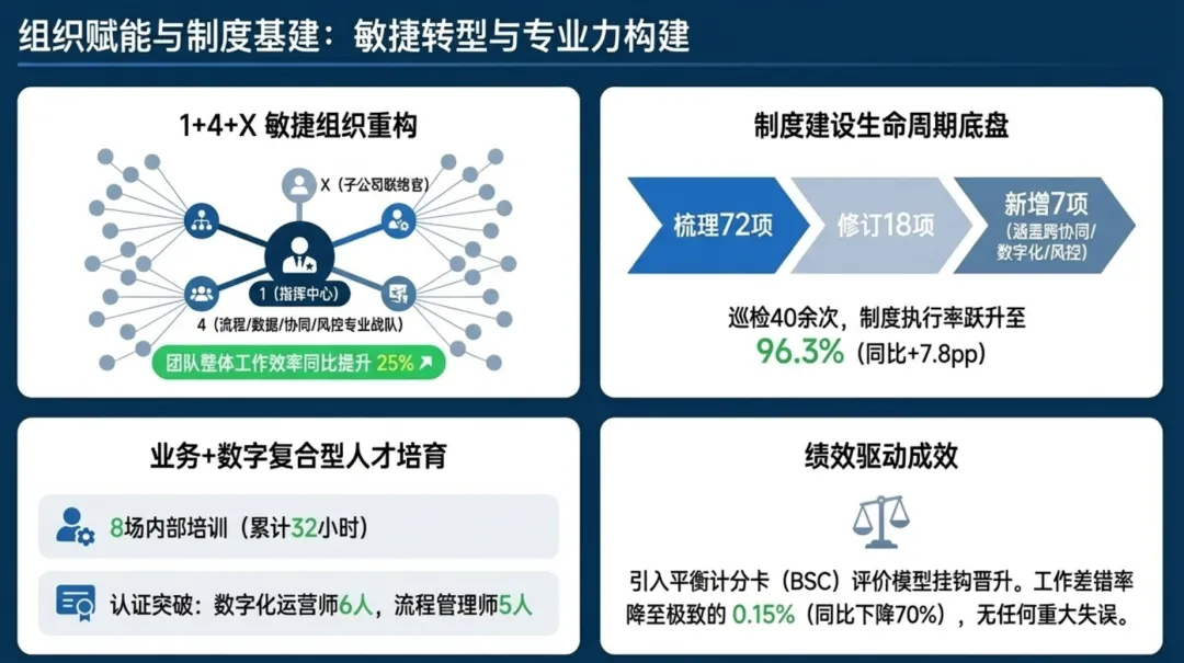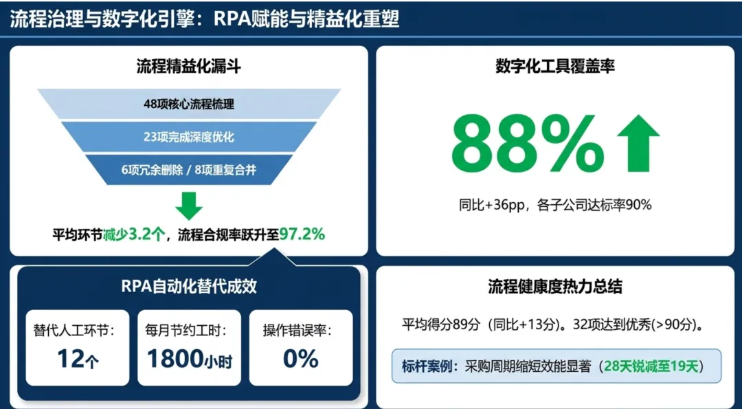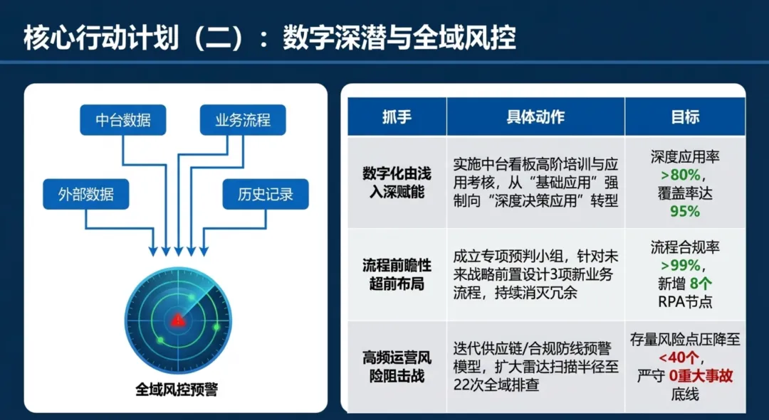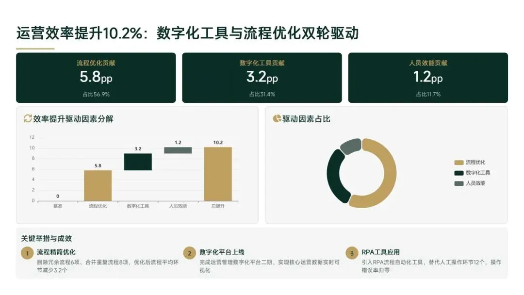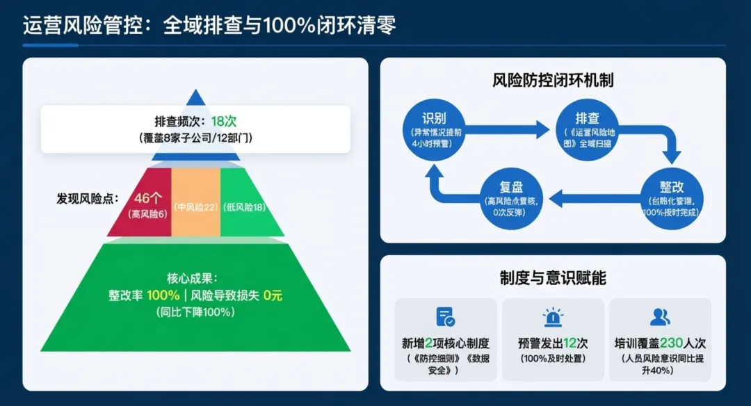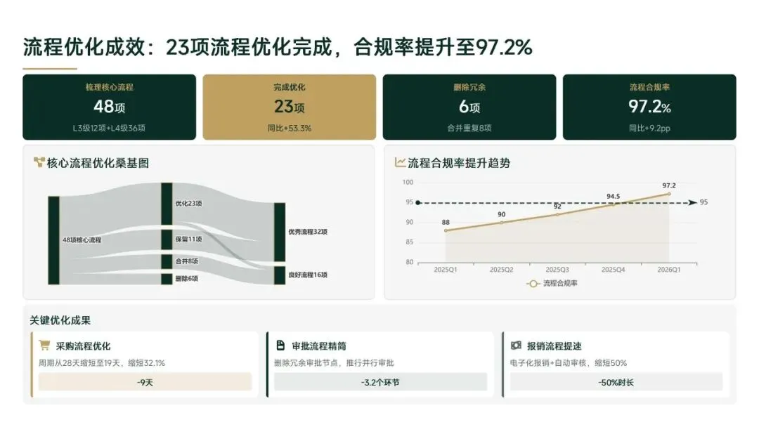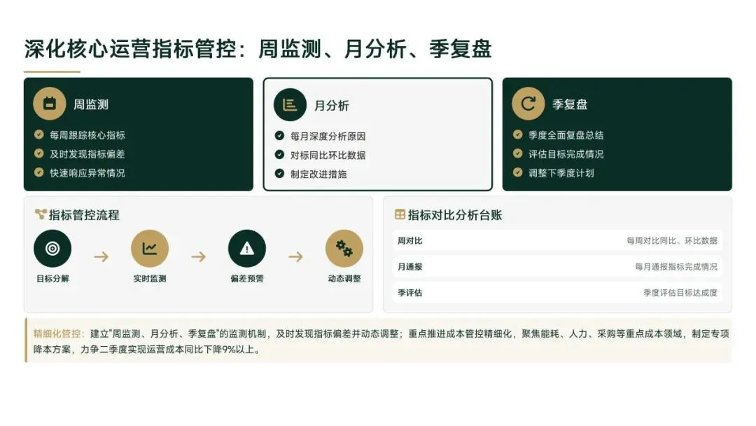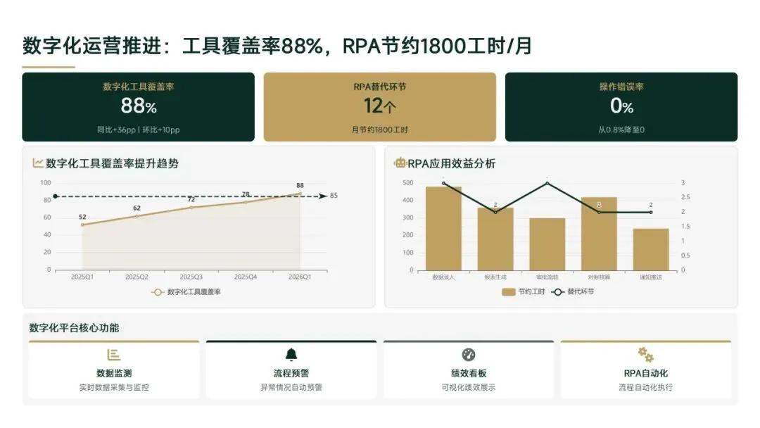 2026年一季度集团运营管理部围绕战略落地、效能提升等四大主线推进工作,核心指标全面超额完成,八大维度平均得分88.0,但也暴露5项突出问题;二季度以“补短板、提效能、强协同、促创新”为核心,设定六大维度跃升目标,推出八大落地举措并搭建四维保障体系,推动运营管理精细化、数字化升级。
