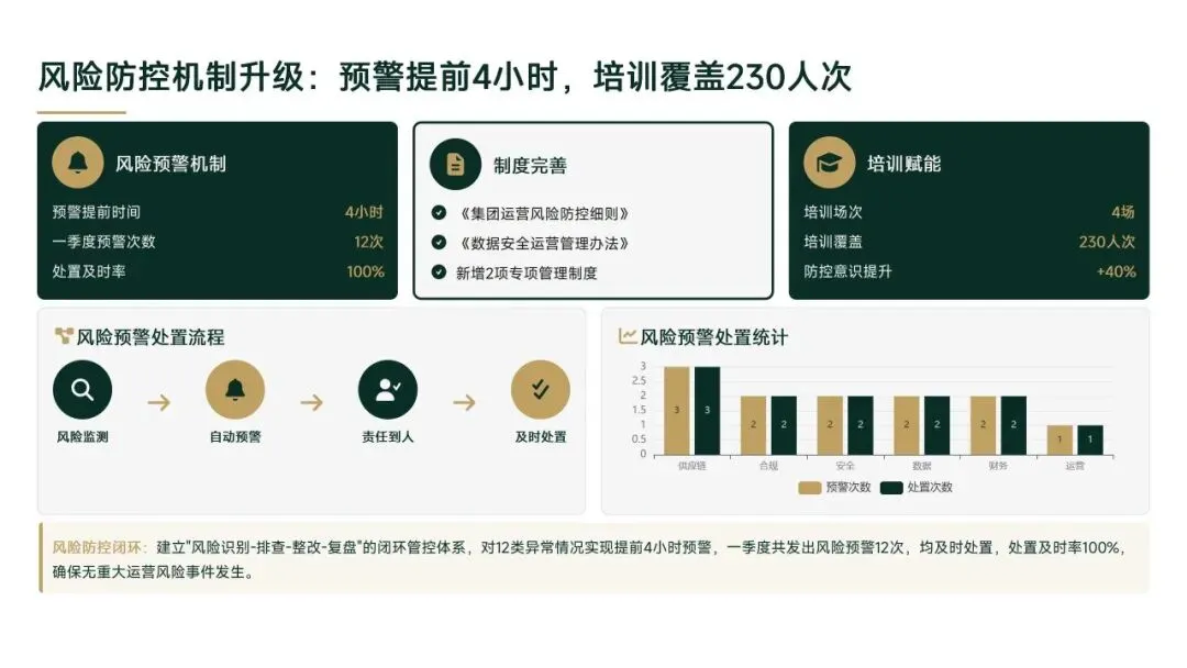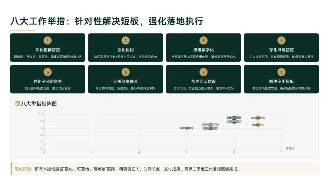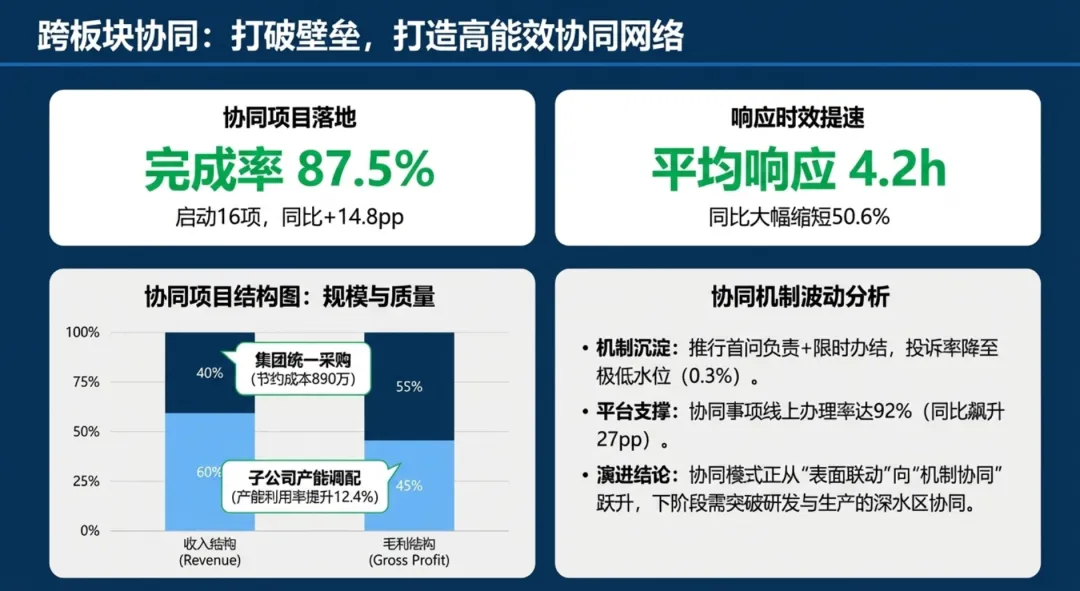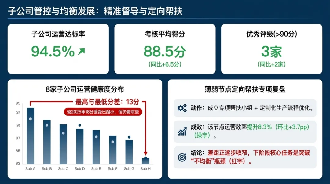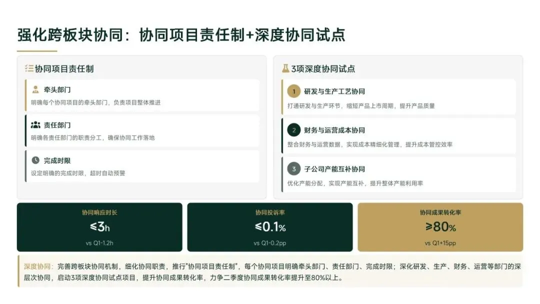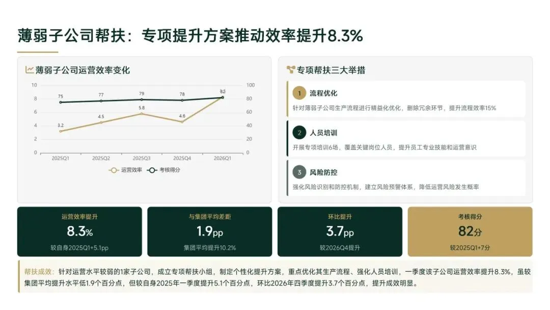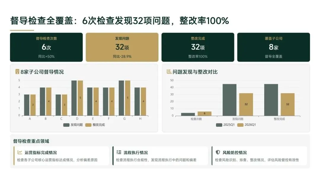 一季度通过流程优化、数字化升级等举措,实现运营效能显著提升,但子公司发展不均衡、协同深度不够等问题仍存。二季度将针对性解决短板,聚焦数字化深度应用、跨板块深度协同、薄弱子公司帮扶等重点,以量化指标、明确节点推动工作落地,为集团上半年运营目标完成提供坚实保障。