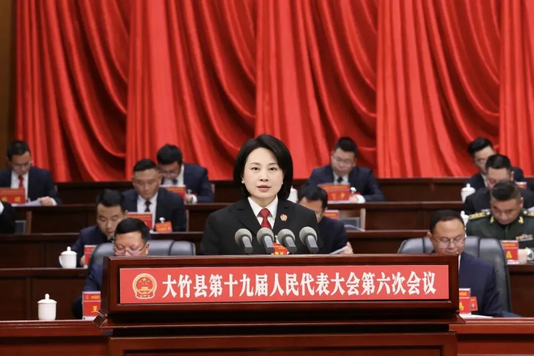 2026年3月18日,在大竹县第十九届人民代表大会第六次会议上,大竹县人民法院院长陈月向大会作法院工作报告。