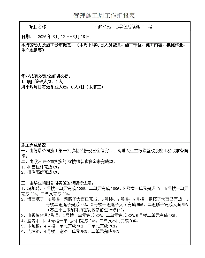 融和苑施工工作汇报 2026.3.18