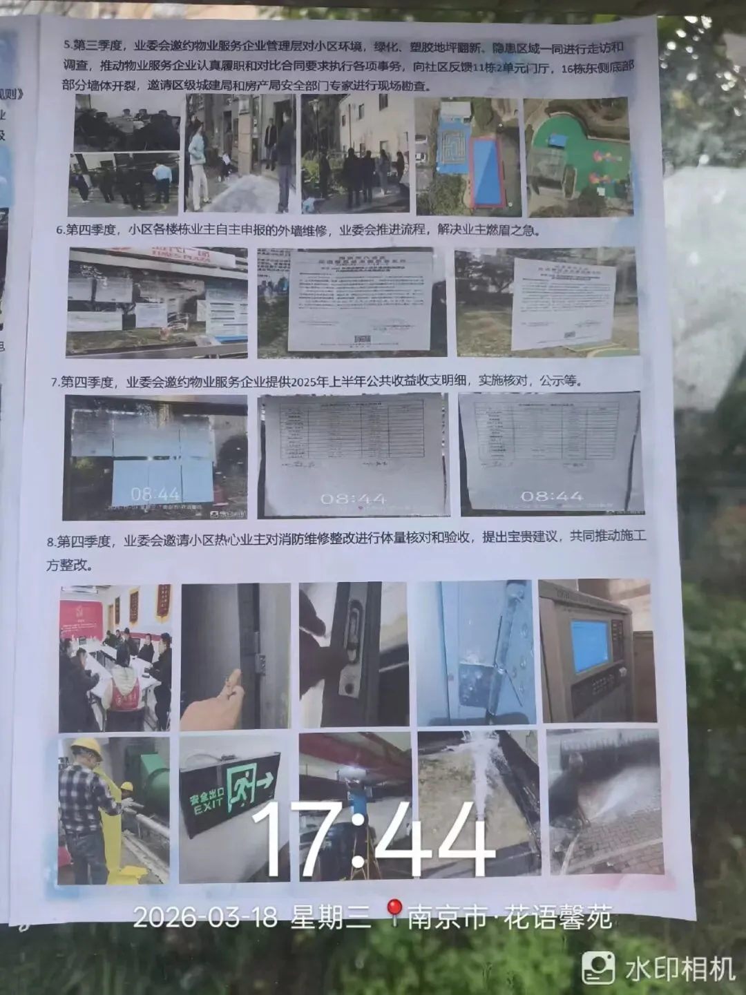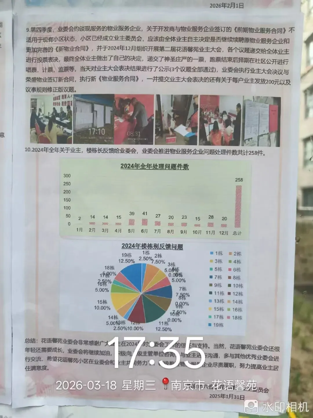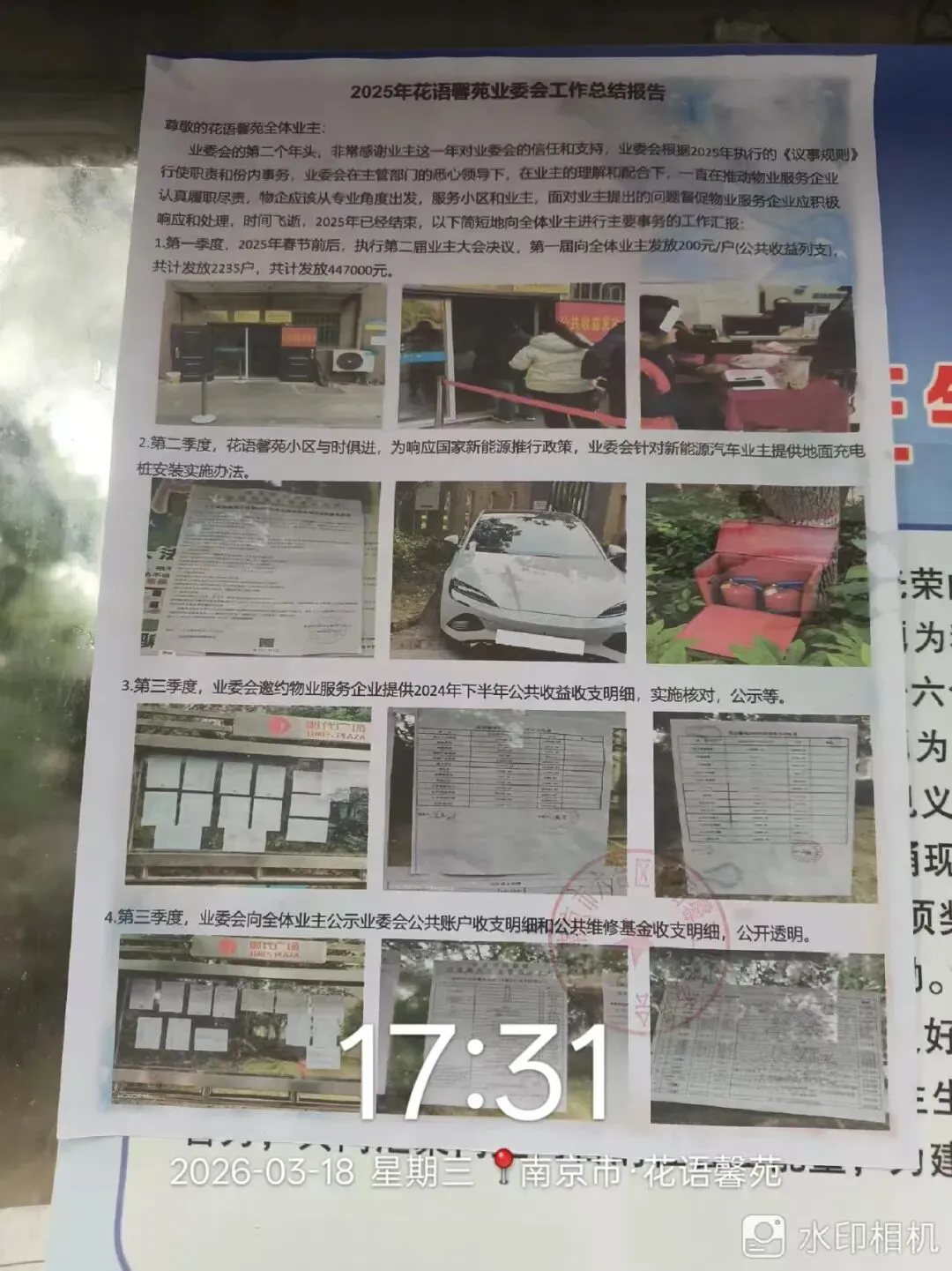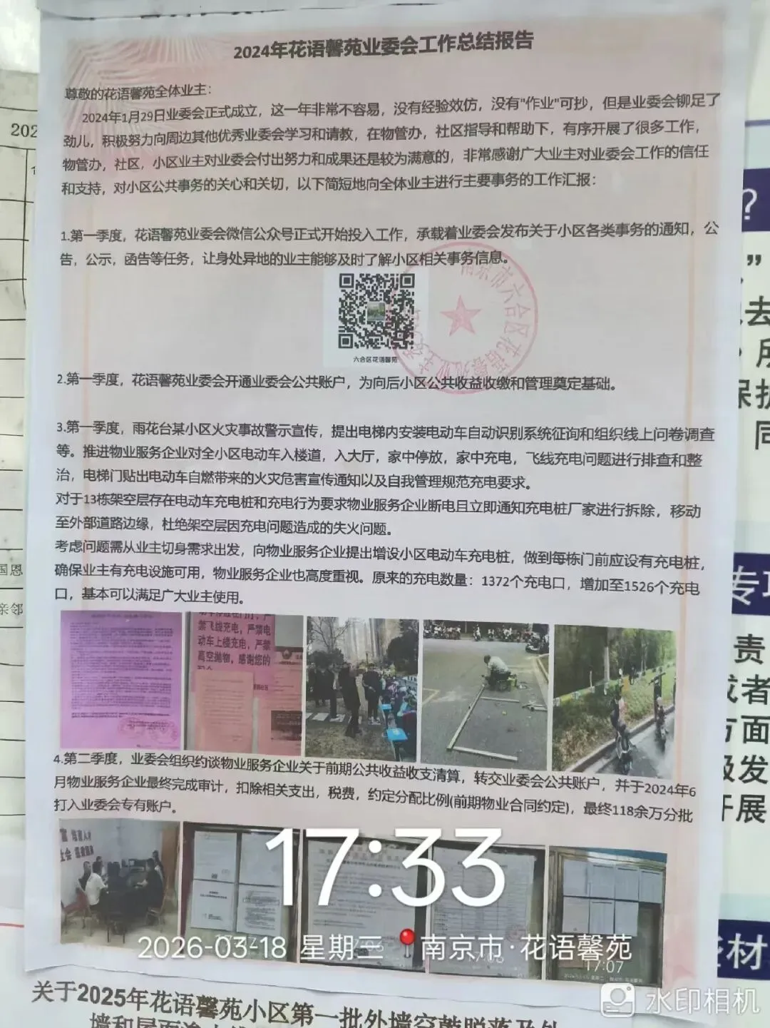 非常感谢广大业主和楼栋长给予对业委会工作的信任与支持。这两年非常的不容易,有理解的业主,也有个别不理解的业主,业委会承受着压力,委屈自然是有的。但是业委会深知,偌大一个小区,19个楼栋以及商业房,2341户业主,大几千号人口,每位业主遇到的问题和需求是不同的,提出的诉求也是不一样的,业委会仅7个成员,各自也有自己的工作和家庭需要忙碌,小区公共事务忙起来的时候真的也非常繁忙,业委会也在不断学习和不断完善,希望广大业主能够切身理解和体谅业委会工作的辛苦和不容易。 无论如何,我们始终相信业主遇到问题反馈至业委会,是业主遇到了真实困难,也是对业委会的信任,我们应当做好业主与物企之间的桥梁,努力化解彼此的误会和予盾,建立相互信任和相互帮扶的良好关系,希望广大业主继续支持业委会工作和小区公共事务,与业委会一道督促物业服务企业,共同推进花语馨苑小区向好发展,克服和解决现有实际困难,积累更多的公共收益,守住业主的钱袋子,努力确保足够资金用于小区老旧更新和建设,也争取每年能够开展发放业主公共收益,提高业主满意度和归属感,再次感谢花语馨苑全体业主的信任与支持。