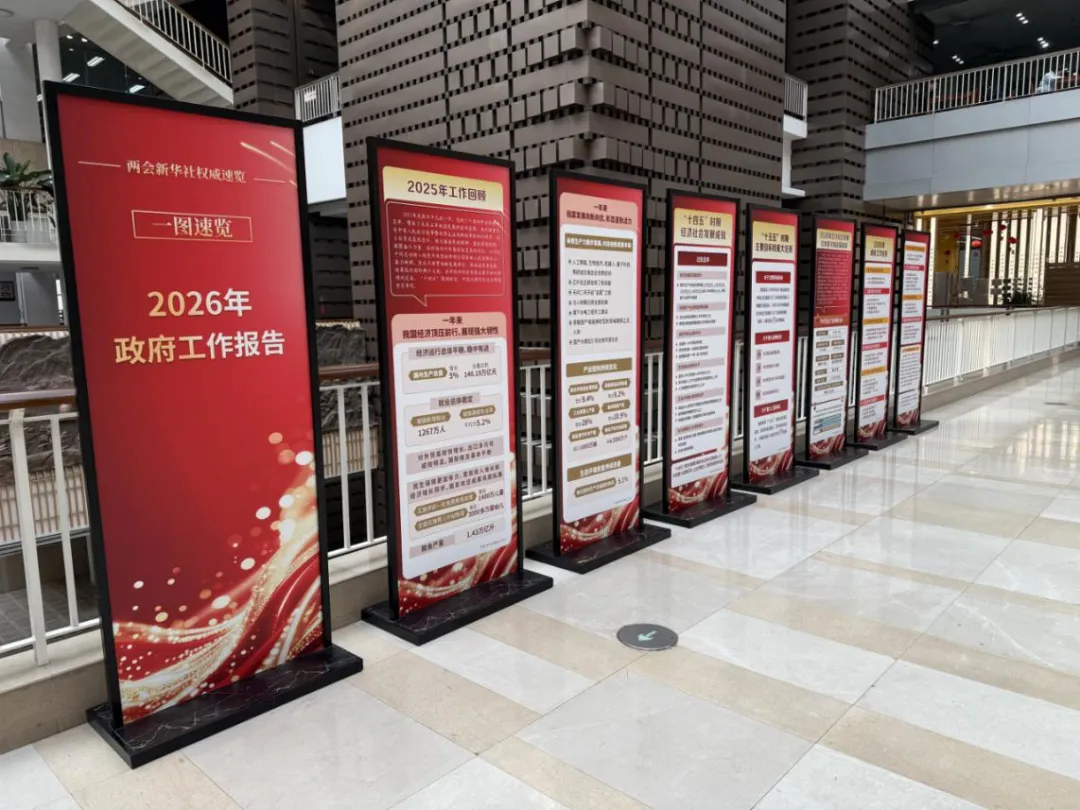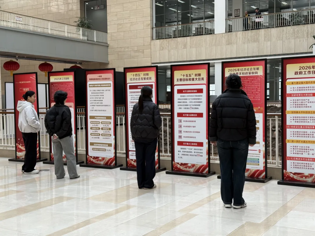 本次展览紧扣2026年政府工作报告脉络,有2025年工作回顾、“十四五”时期经济社会发展成就、“十五五”时期主要目标和重大任务、2026年经济社会发展总体要求和政策取向、2026年政府工作任务。