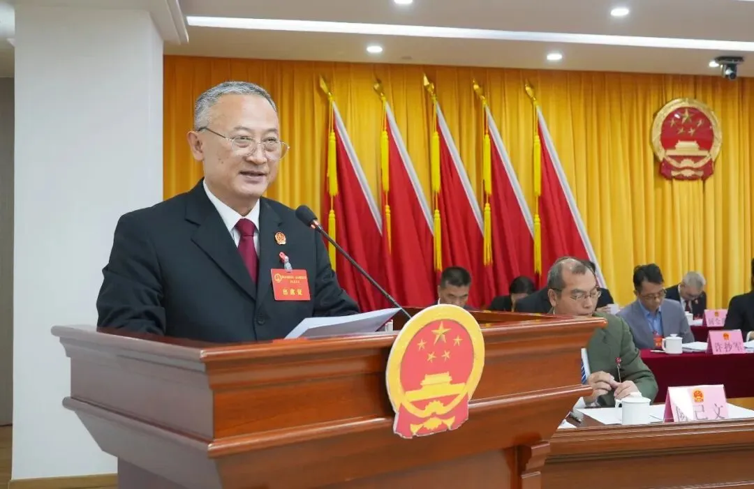 2026年3月18日,湛江市赤坎区人民法院院长叶辉在赤坎区第十一届人民代表大会第九次会议上作法院工作报告。