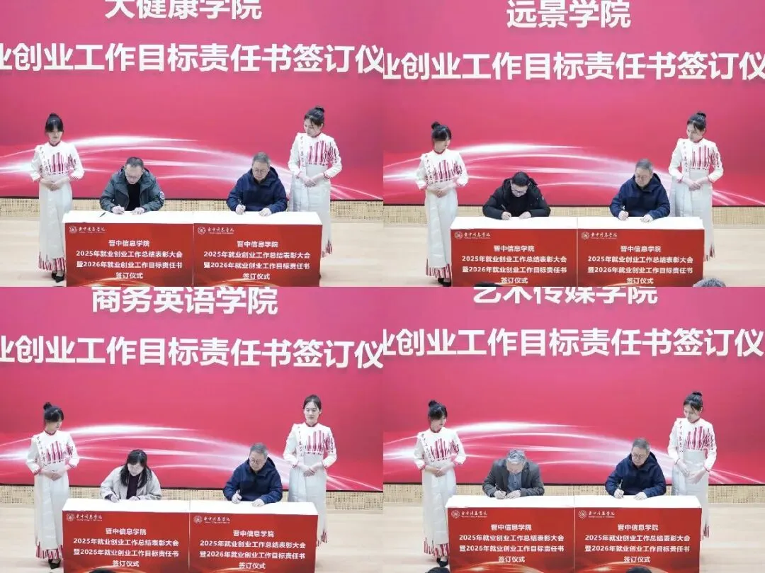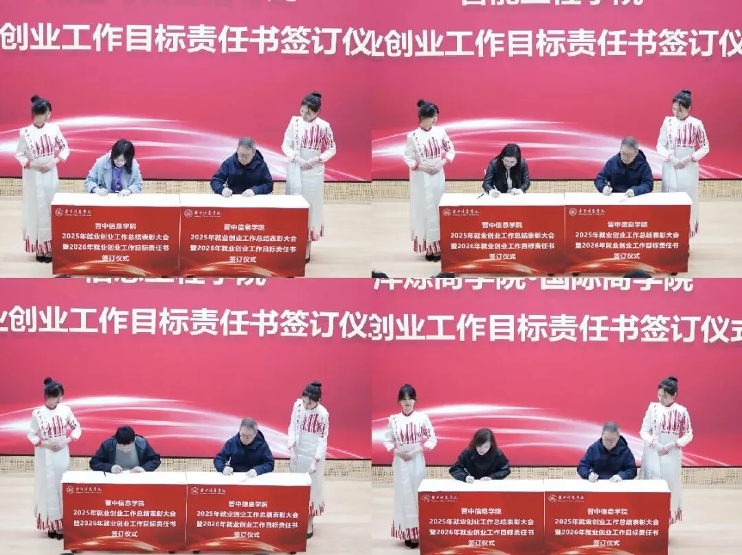 校长姬宇与各二级学院负责人签订了《晋中信息学院2026年就业创业工作目标责任书》。