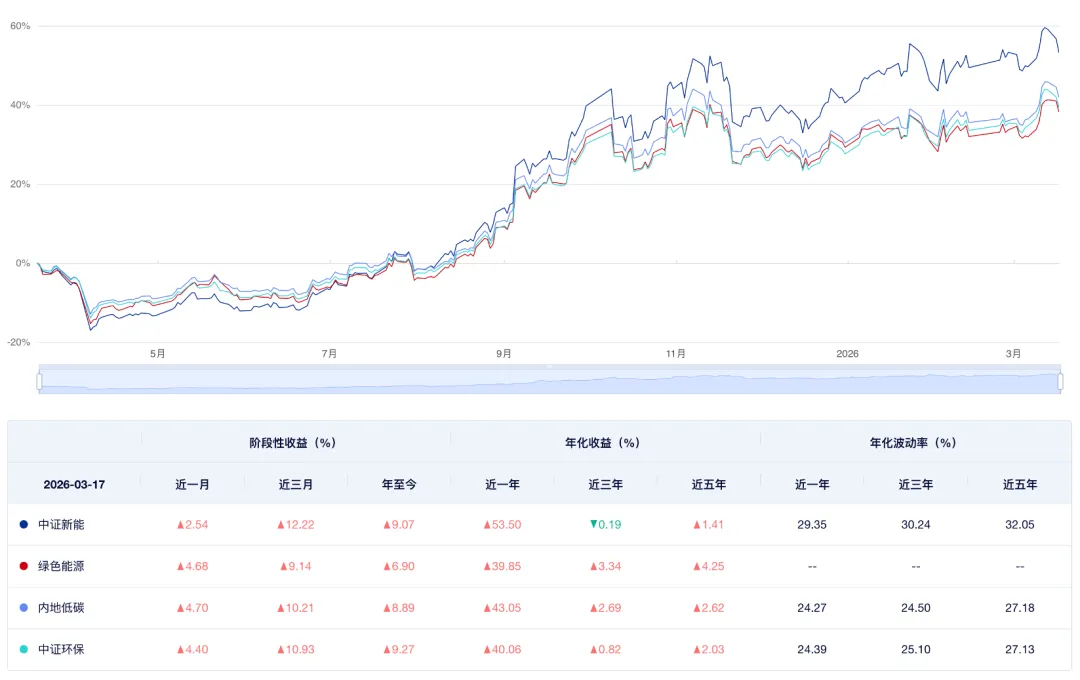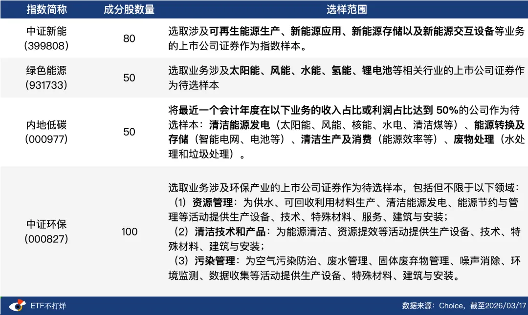 这次我们不准备再去展开讲其中的细分赛道,而是想顺着这次《政府工作报告》的核心脉络,把几只绿色产业相关主题指数放在一起捋一捋,看看它们到底有什么区别。