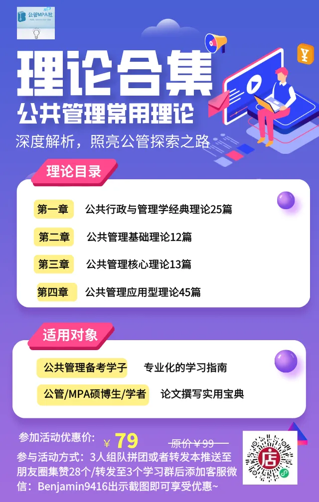 阅读彩蛋:关注“公管MPA学习社”回复"理论合集",获取公共管理/MPA常用的66个理论/范式大合集~