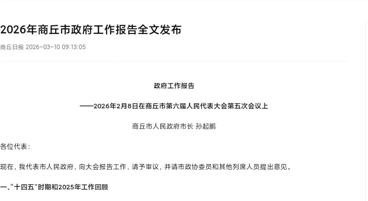 紧接着3月13日,商丘市人民政府办公室又发布了《关于明确市政府工作报告提出的2026年重点工作责任单位的通知》,把这几项任务一一分解到了具体的责任单位 。