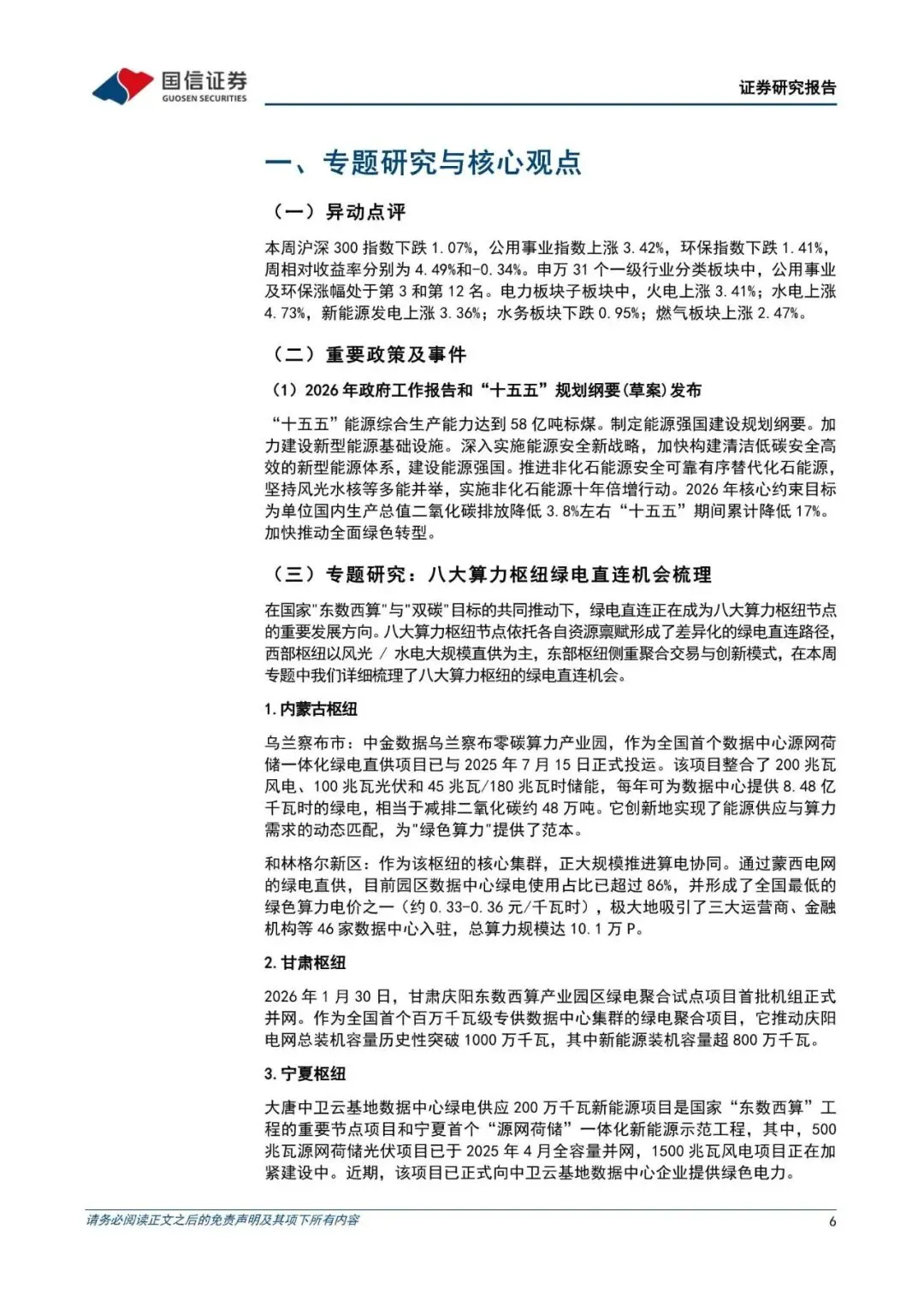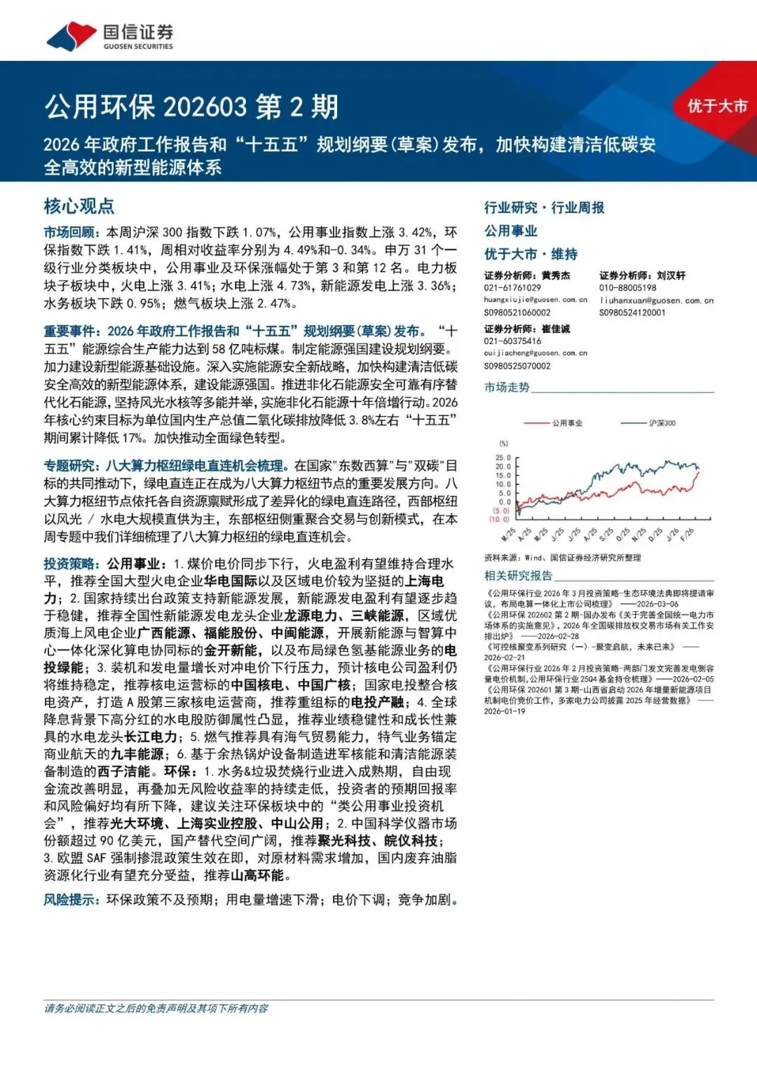 公用环保行业202603第2期:2026年政府工作报告和“十五五”规划纲要(草案)发布,加快构建清洁低碳安全高效的新型能源体系-260311-国信证券-30页