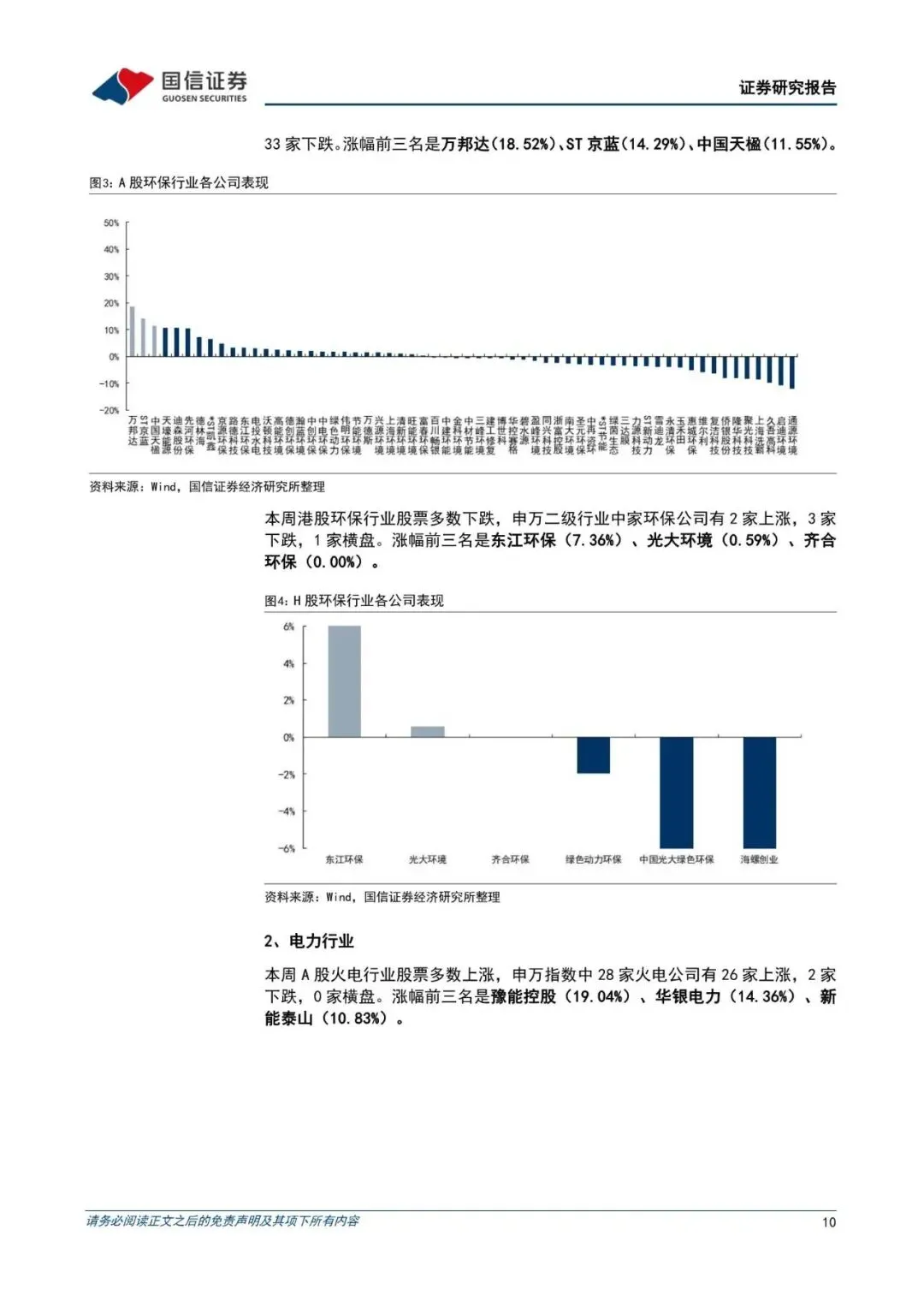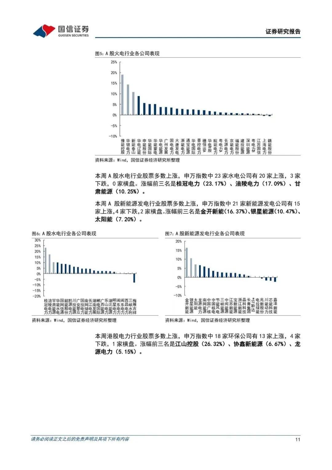 本周沪深 300 指数下跌 1.07%,公用事业指数上涨 3.42%,环保指数下跌 1.41%,周相对收益率分别为 4.49%和-0.34%。申万 31 个一级行业分类板块中,公用事业及环保涨幅处于第 3 和第 12 名。电力板块子板块中,火电上涨 3.41%;水电上涨 4.73%,新能源发电上涨 3.36%;水务板块下跌 0.95%;燃气板块上涨 2.47%。