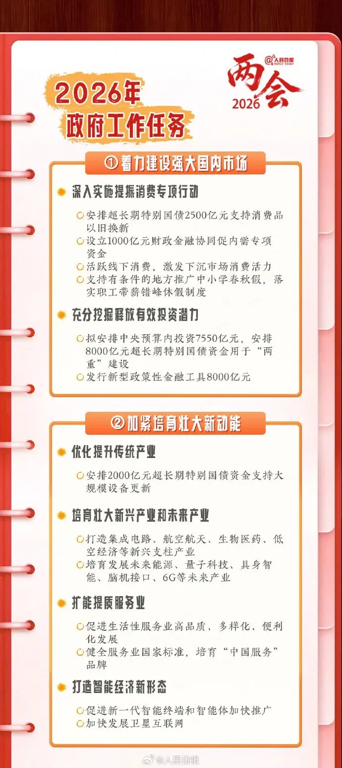 2026两会最新资讯分享-手账版政府工作报告要点!