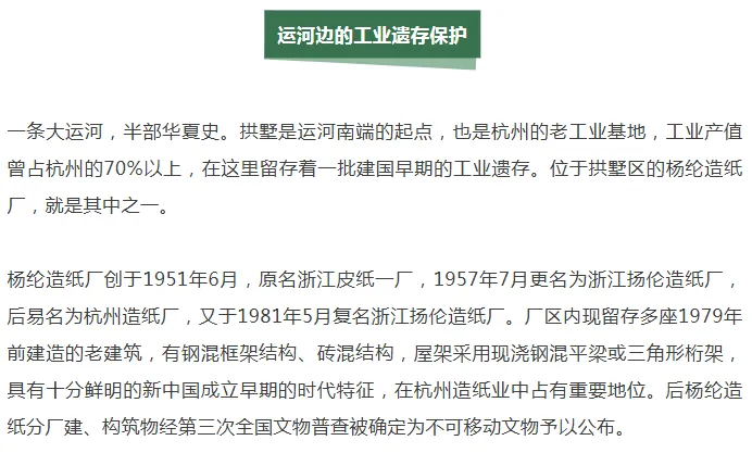 用法治守护历史文化名城,开展大运河沿线名城名镇名村保护专项监督,办理1957年成立的浙江扬伦造纸厂古建筑保护案,运用无人机航拍采集数据,构建3D模型测算建筑损毁情况,推动开展保护性修缮,让工业遗存焕发新活力。