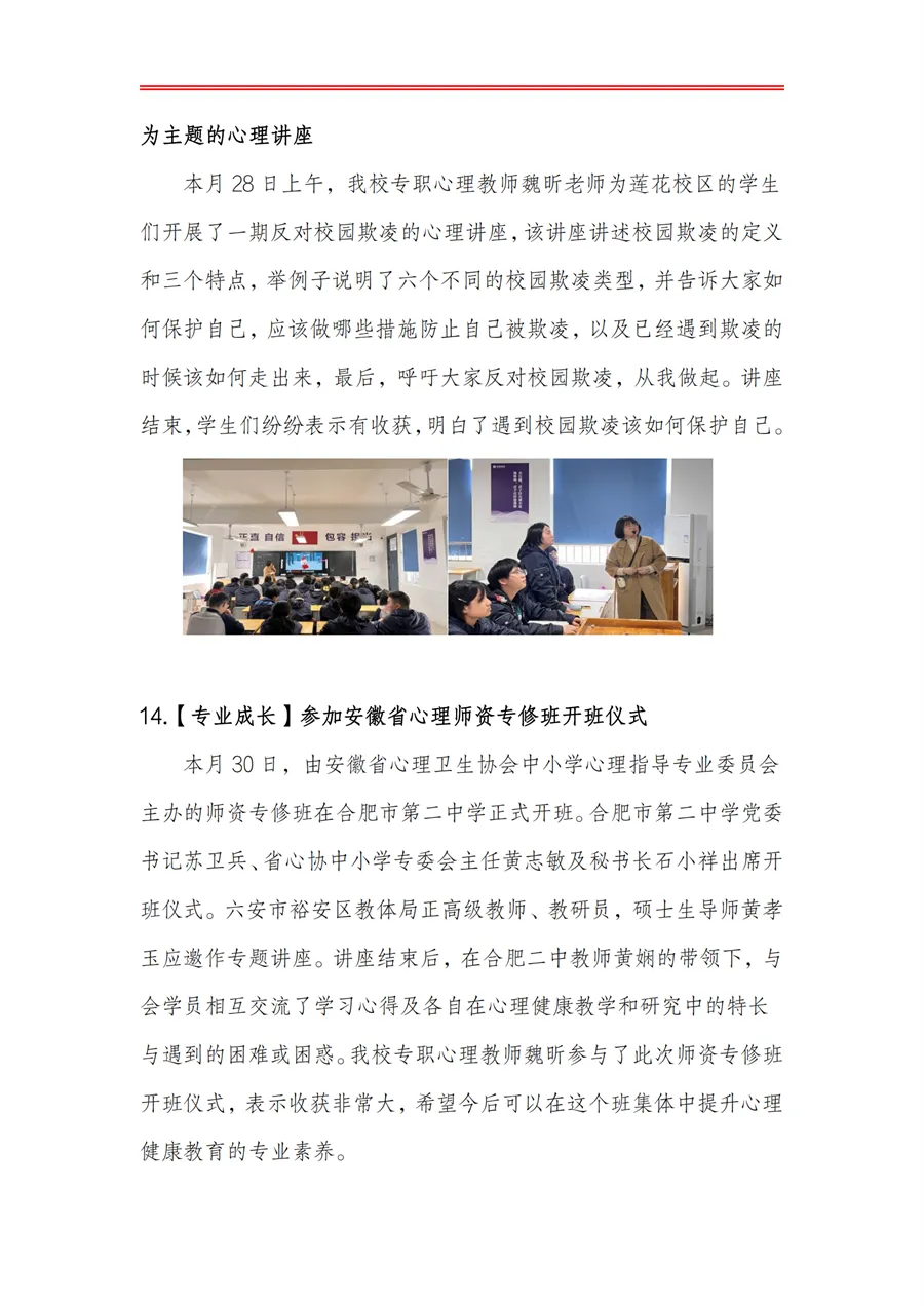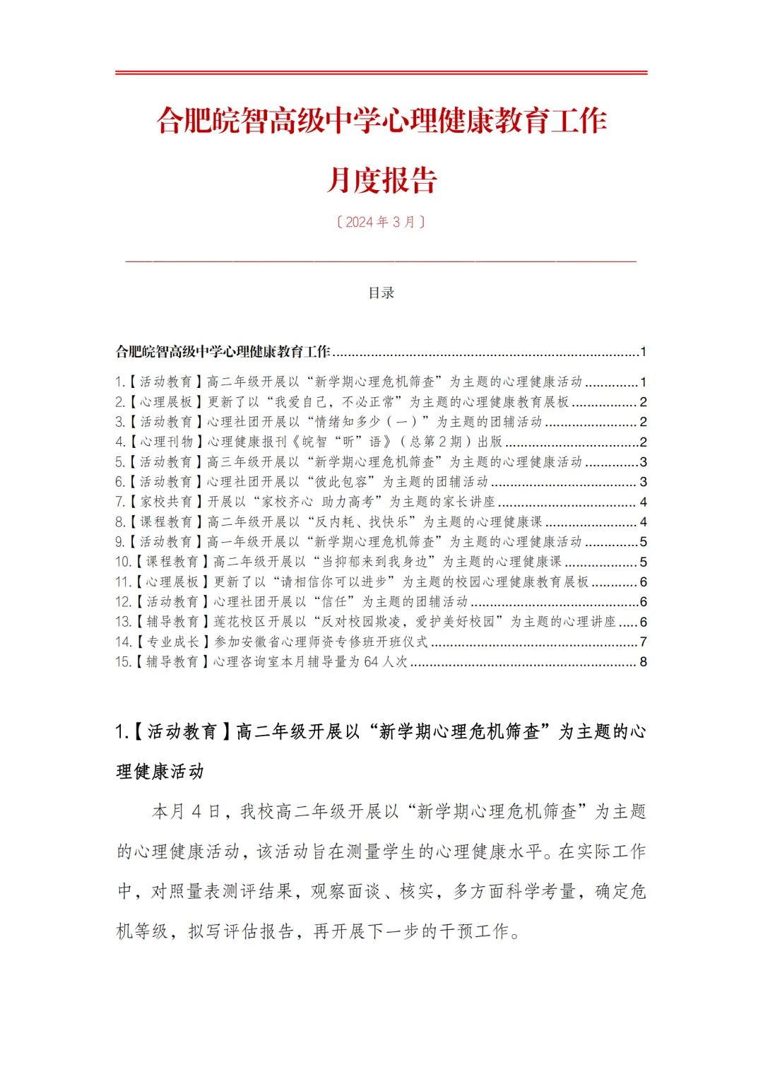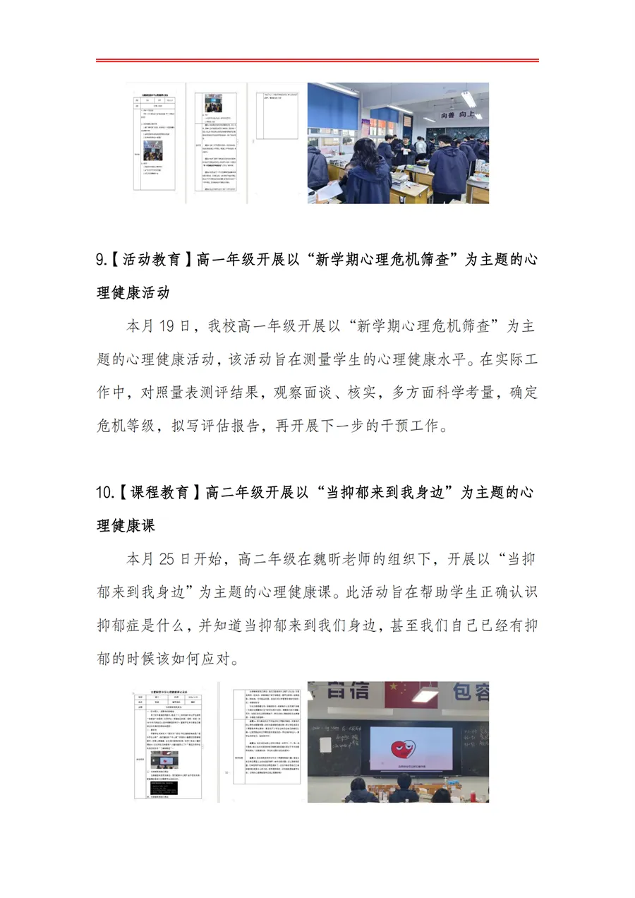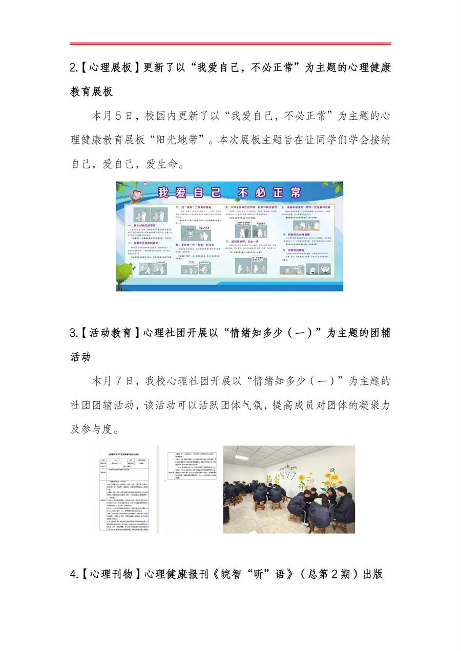 >合肥皖智高级中学心理健康教育工作月度报告(24年3月)