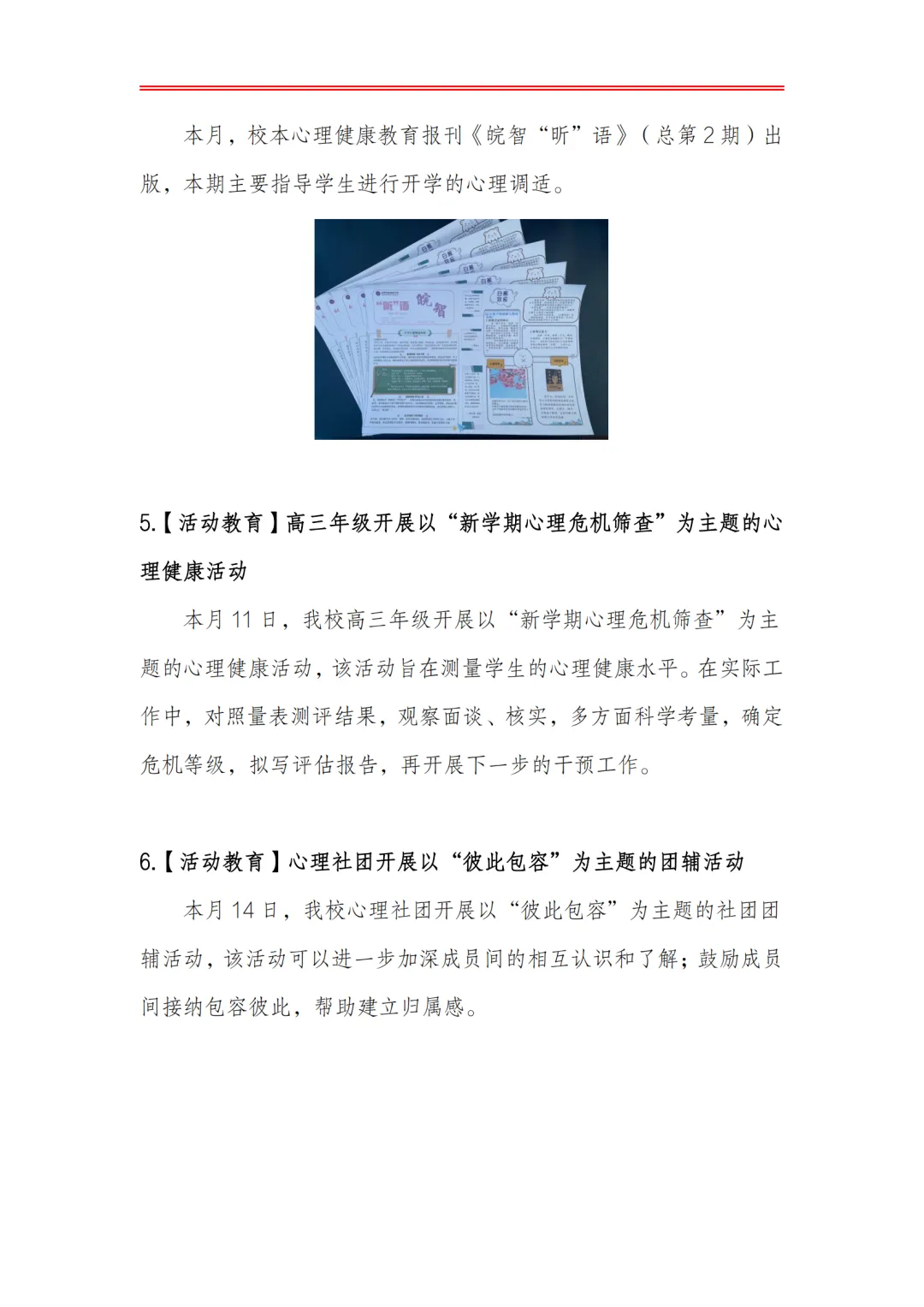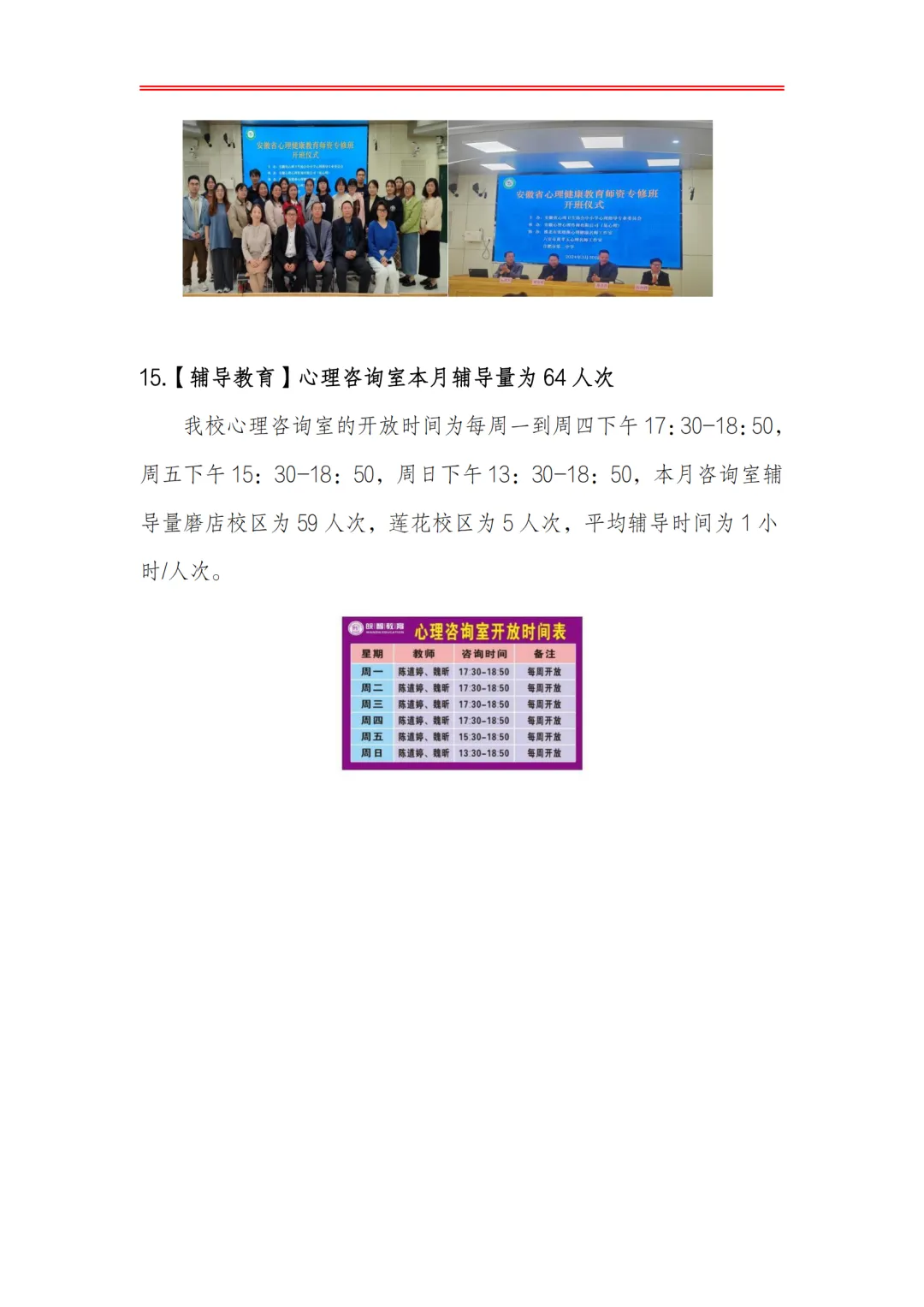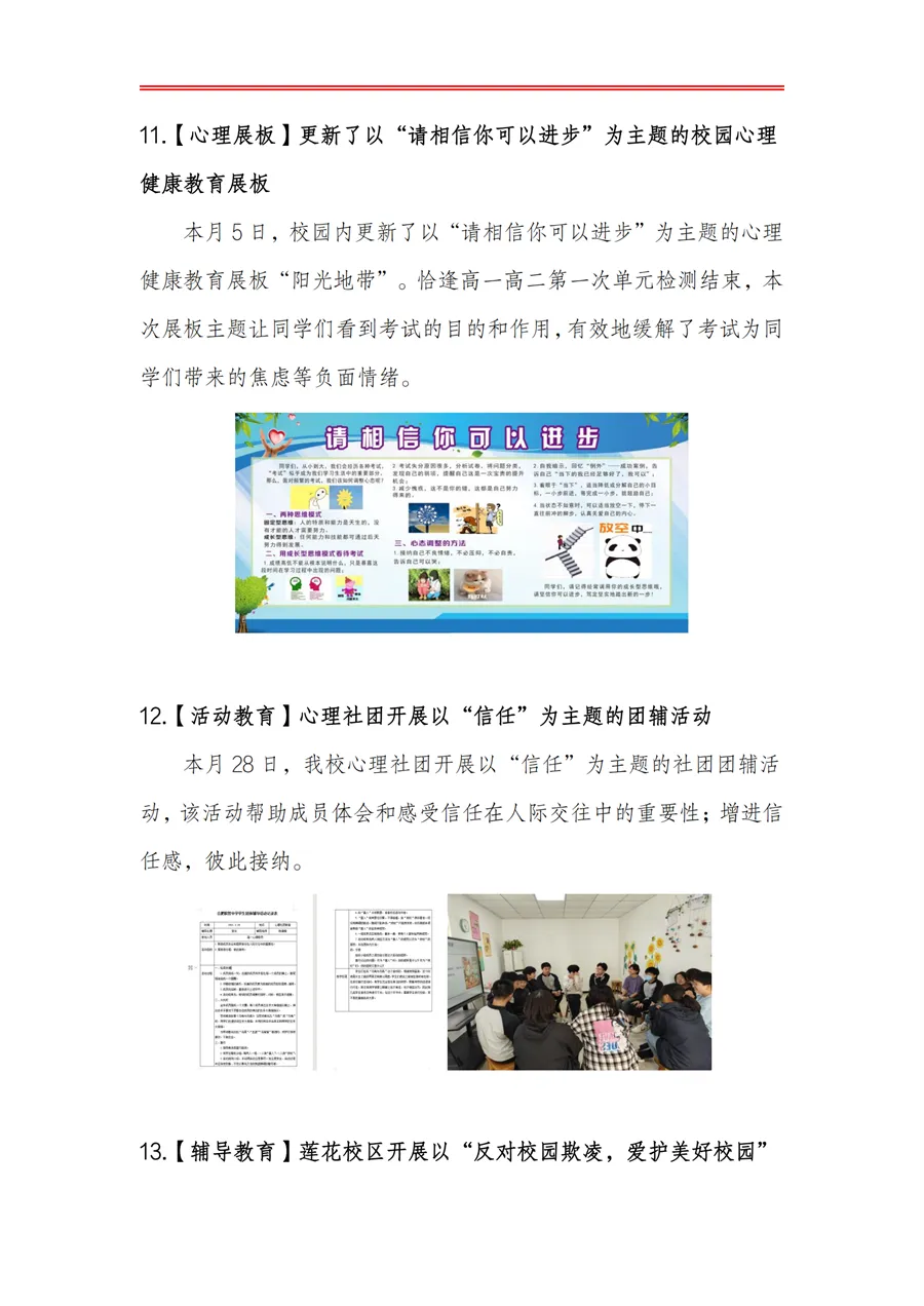 >合肥皖智高级中学心理健康教育工作月度报告(24年3月)