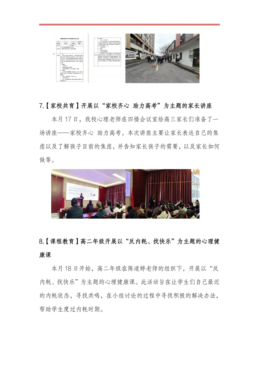 合肥皖智高级中学心理健康教育工作月度报告(24年3月)