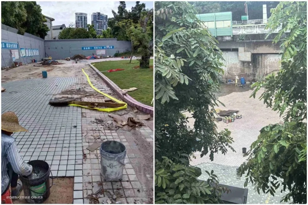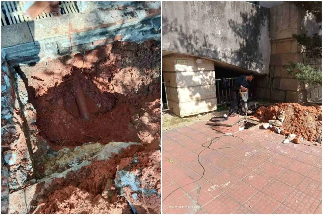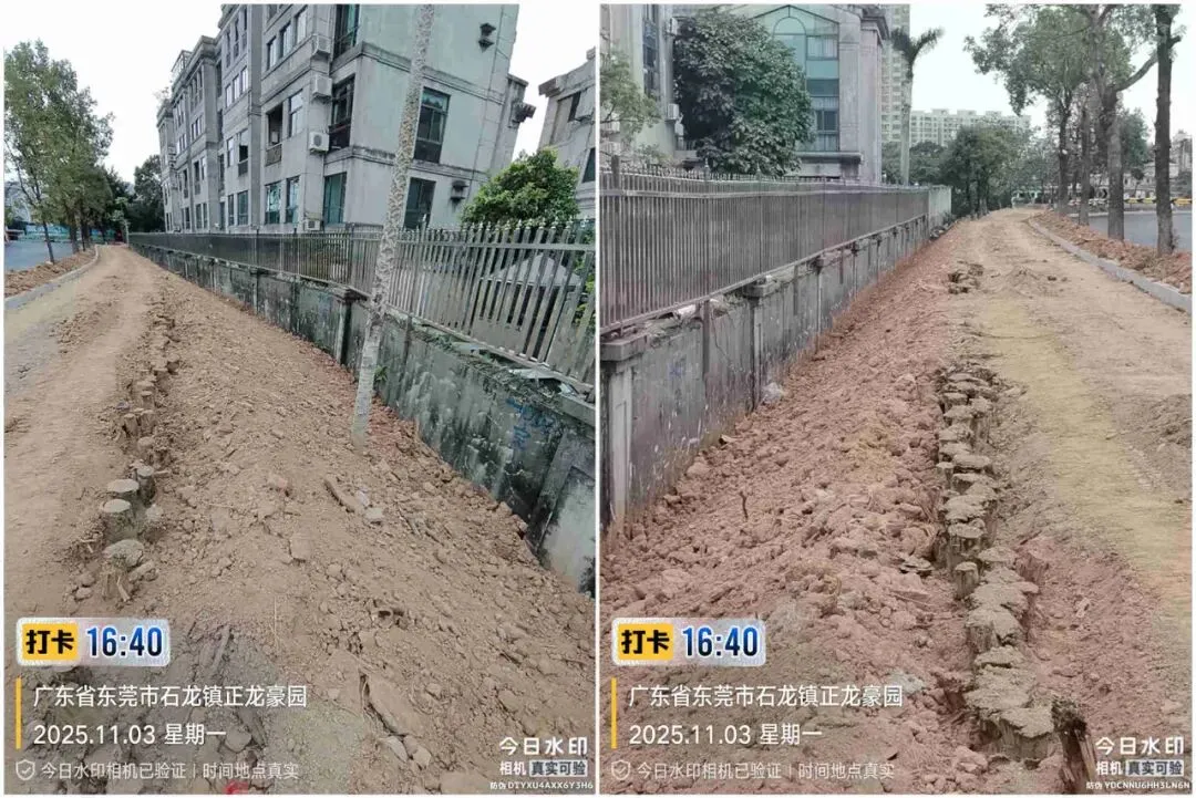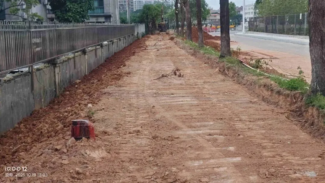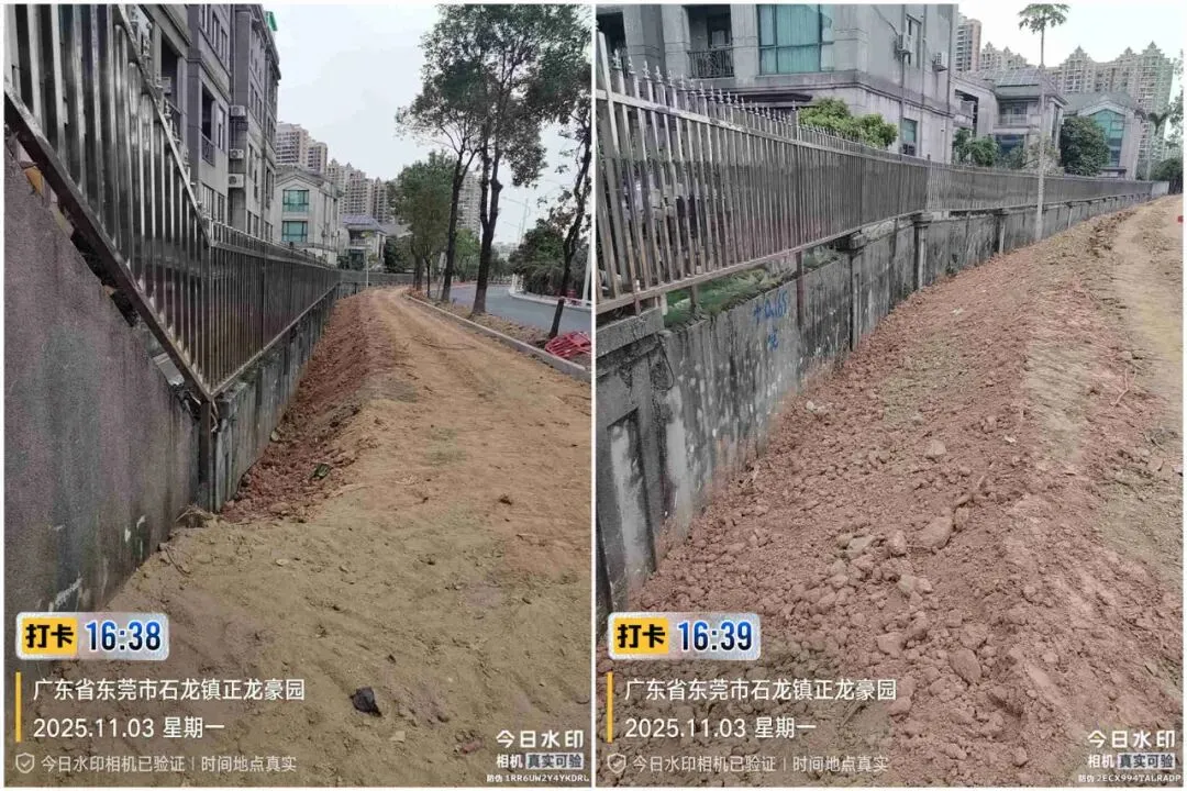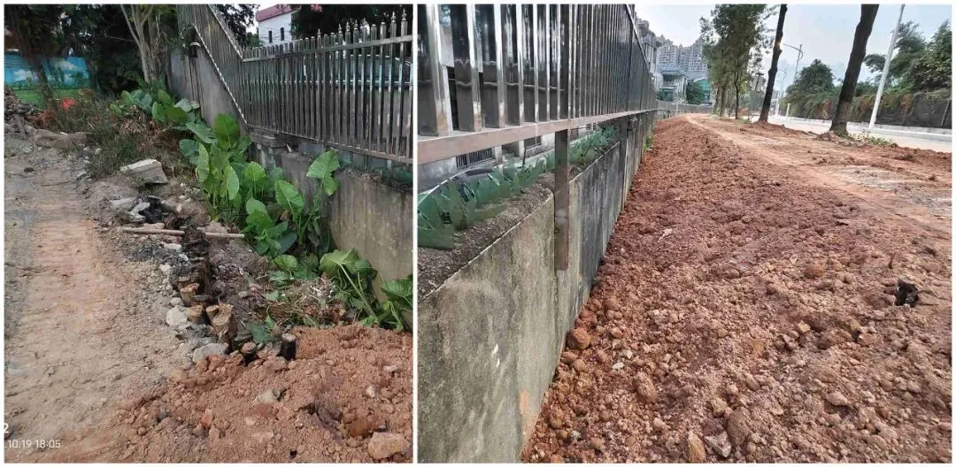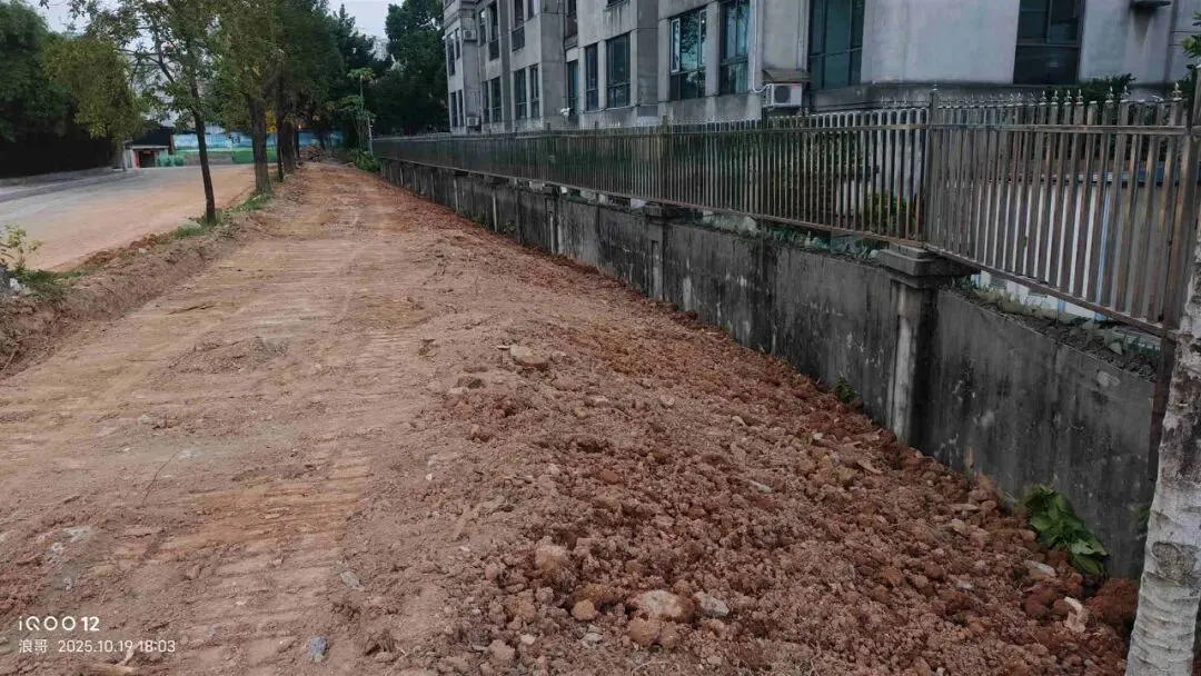 2025年11月3日,经过与工程建设中心沟通,施工队将之前的泥土挖走了一部分,以降低对围墙的压力。