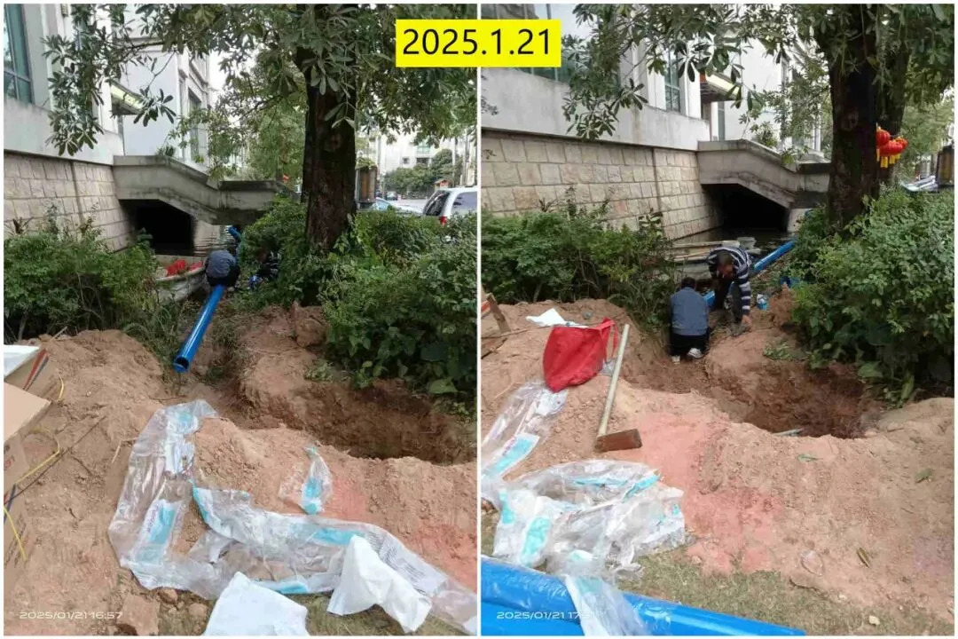 由于整改内容中第2,3点小区目前较难满足所以移交事宜目前暂未进行。(以上,回复南方电网)。2025年1月17-21日,一二期及会所湖周边供水管爆裂,马上进行抢修。