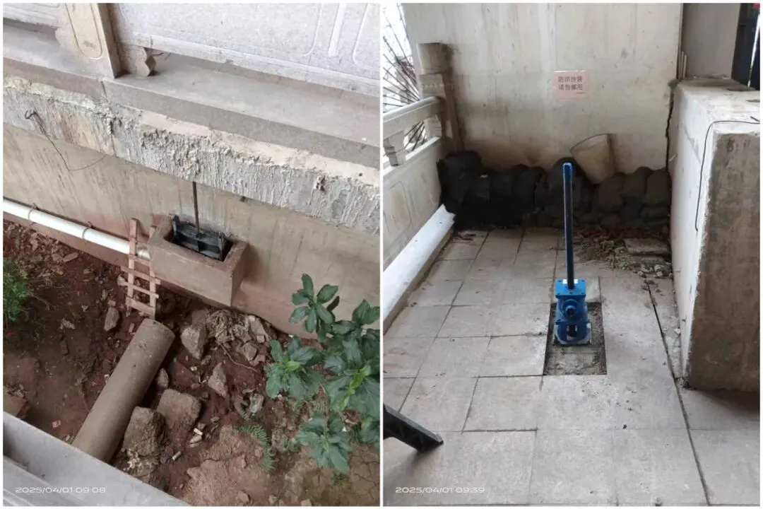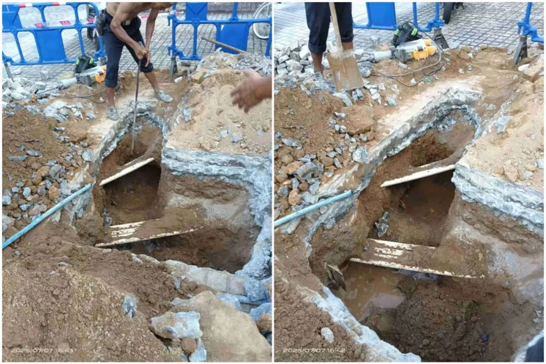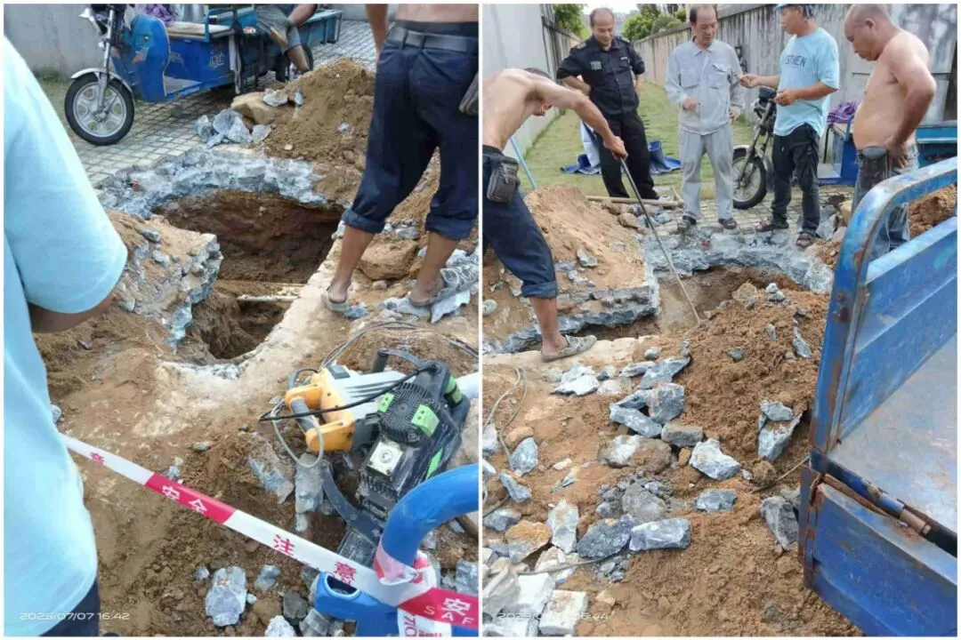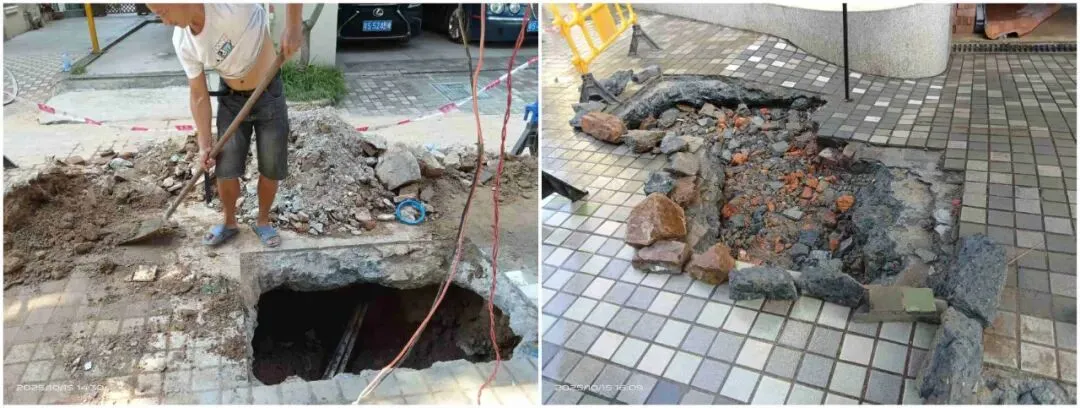 2025年10月15日,D12门前爆水管已回填可恢复单线行车要注意安全减速慢行。