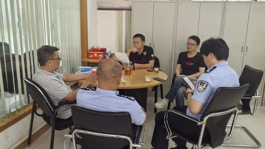 出席:曹旭林、赖德明、刘国标、派出所刘所长、民警三人。A、之前的偷盗事件于8月8日破案,盗贼已抓获;