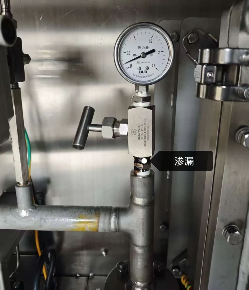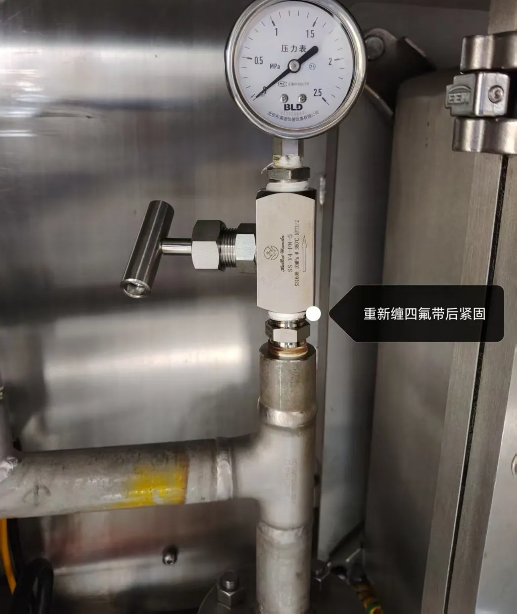 对原油自动采样仪压力表连接处渗漏及时紧固处理。