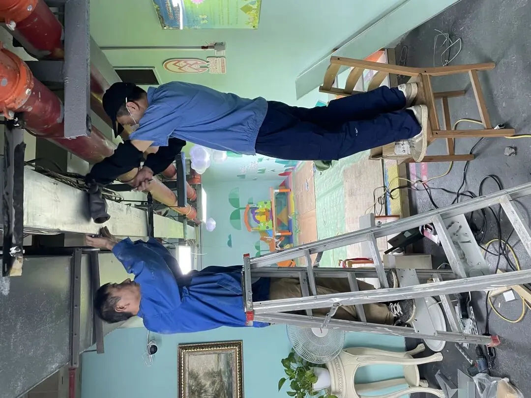 七是太阳鸟游戏角桥架“碰头”问题。地下活动室通过“零距离家园”平台和热心业主捐助,建起太阳鸟儿童游戏角,但收到居民反映:原有的管线桥架偏低,容易碰到成人脑袋。组织物业师傅仔细琢磨,想方设法将约10米沉重的桥架拆除,更换焊接更薄桥架,最终抬高30厘米,一举解决“碰头”问题,同时在桥架上增设原来没有的接地线。