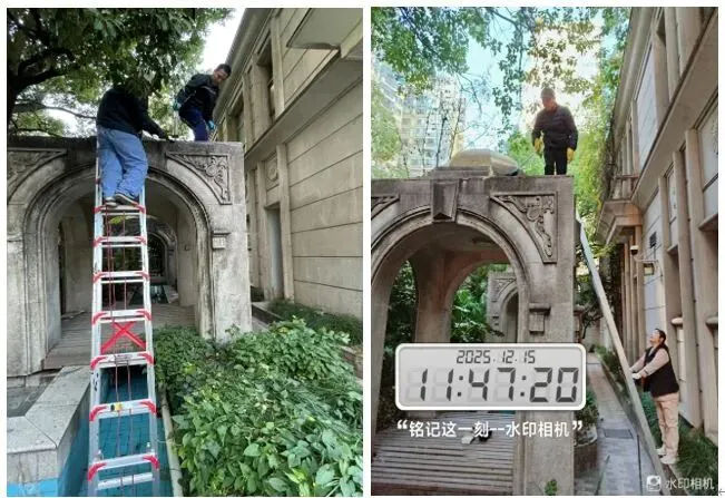 一是住宅楼门厅大堂渗水问题。渗水是老小区、老房子的“老大难问题”,也是不少小区维修资金的“无底洞”。为减少渗水对维修资金的占用,组织物业师傅开动脑筋,自主维修。经2024年夏季高温陆续登高施工,五个门厅大堂的“漏水”问题基本解决,但在台风等长时间持续正压的风雨下边角线缝部位存在“渗水”,经2025年多次在夏秋暴雨及台风天气检查渗水情况,排摸渗水点位、分析渗水原因,“渗水”问题基本解决,并积累了后续出现渗水反复时的处理经验。2026年将对五个门厅大堂顶部进行修补和刷新。